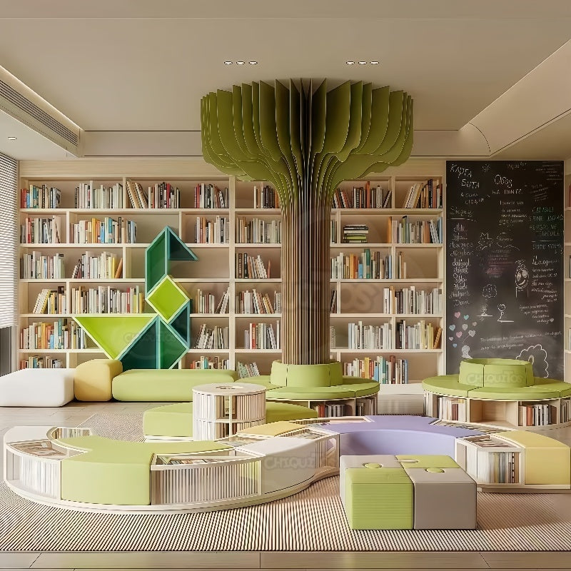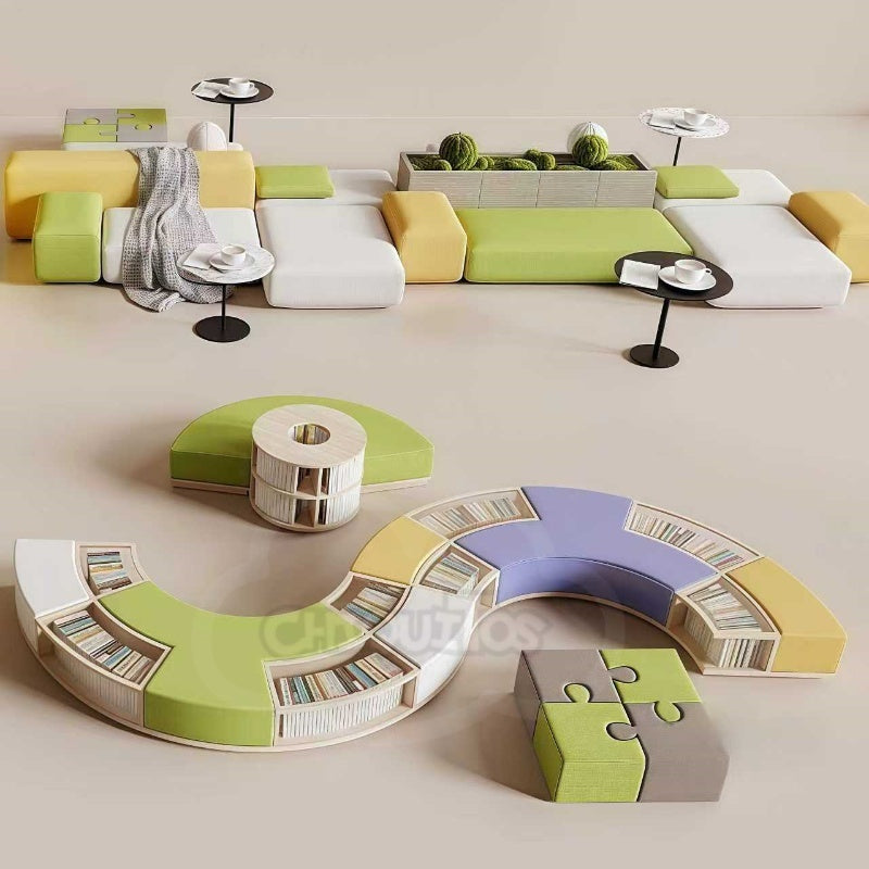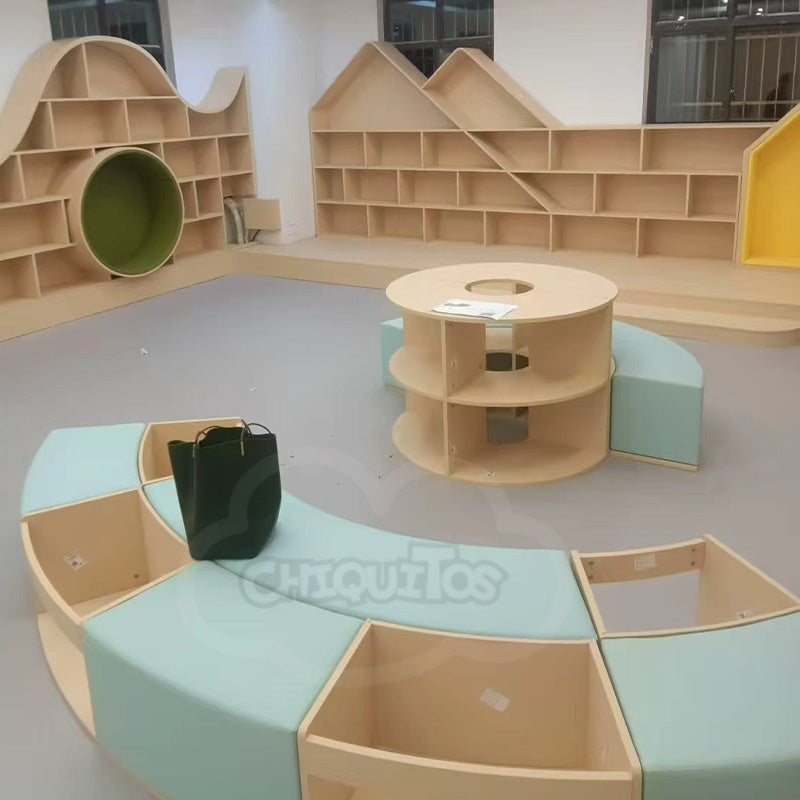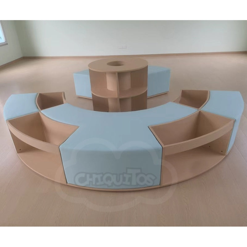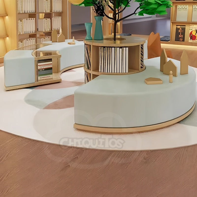 Chiquitos Arc-Shaped Urban Seating with Integrated Green Plant Area for Eco-Friendly Environments Library Daycare Center