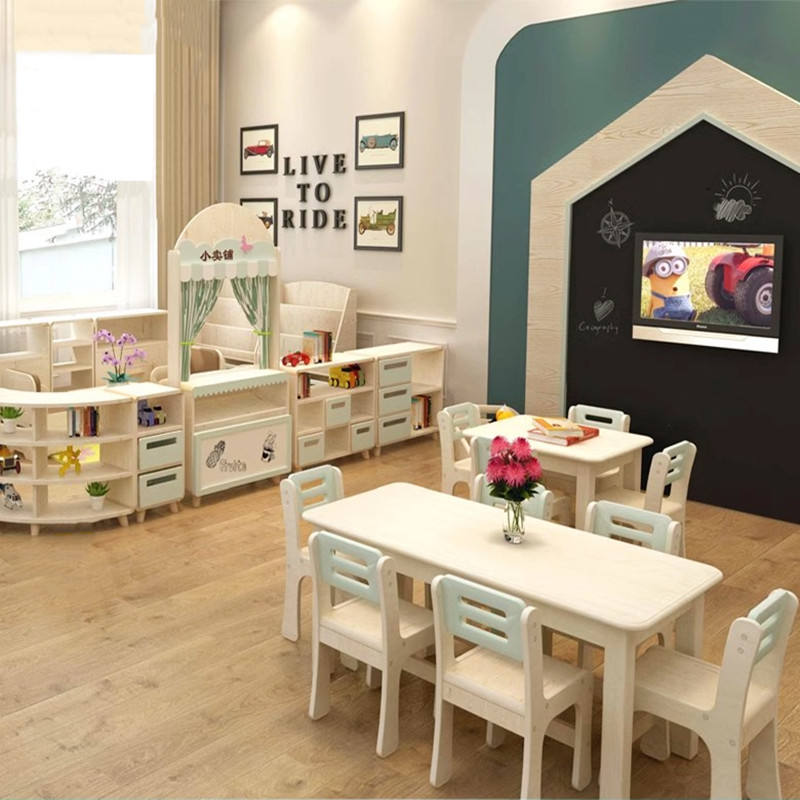 Chiquitos Ash wood series Daycare Center Furniyure Study Table Child Gaming Solid Wood Chair And Table Kids Play Table Chair