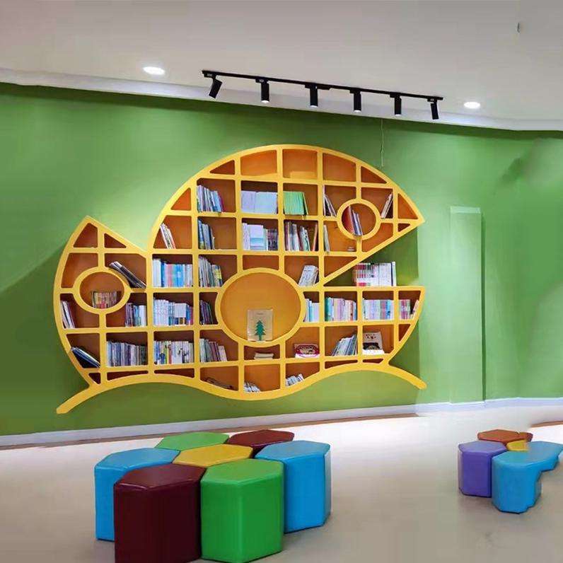 Chiquitos Bookshelf Furniture Kids' Cabinets Book Case Wood Wall Fish-shape Book Shelves Kindergarten school decoration