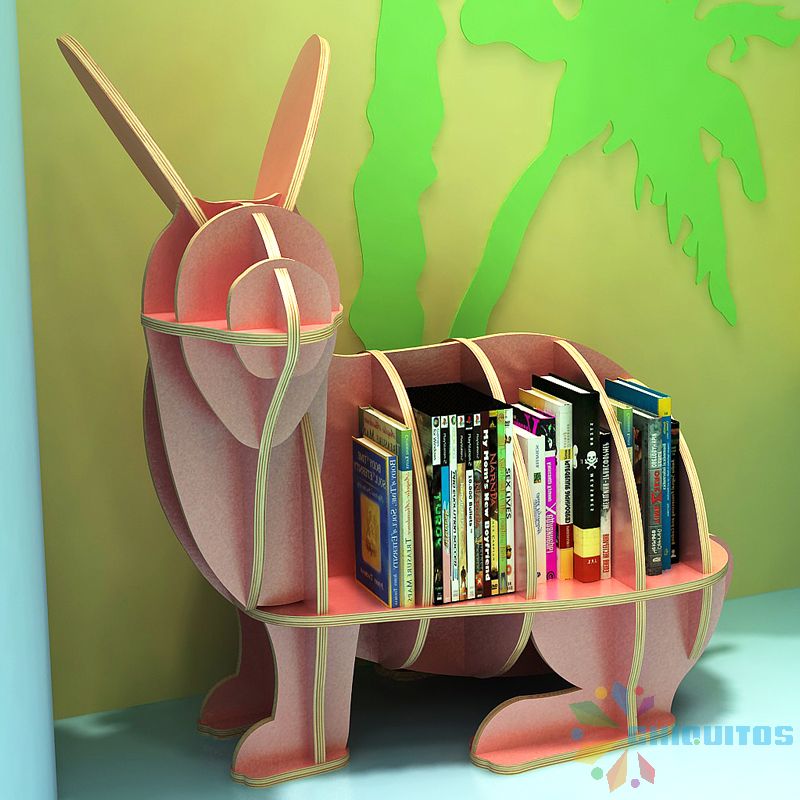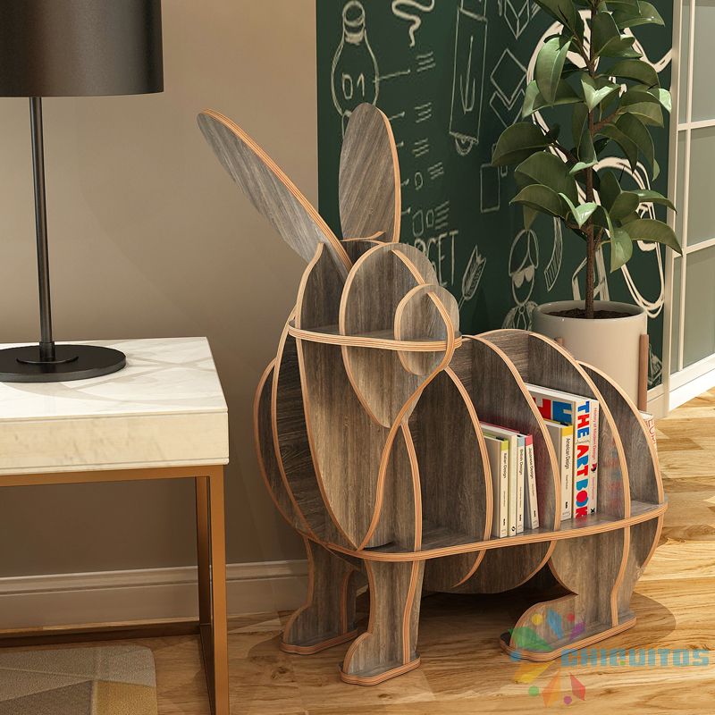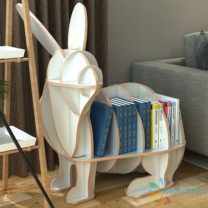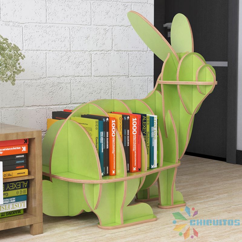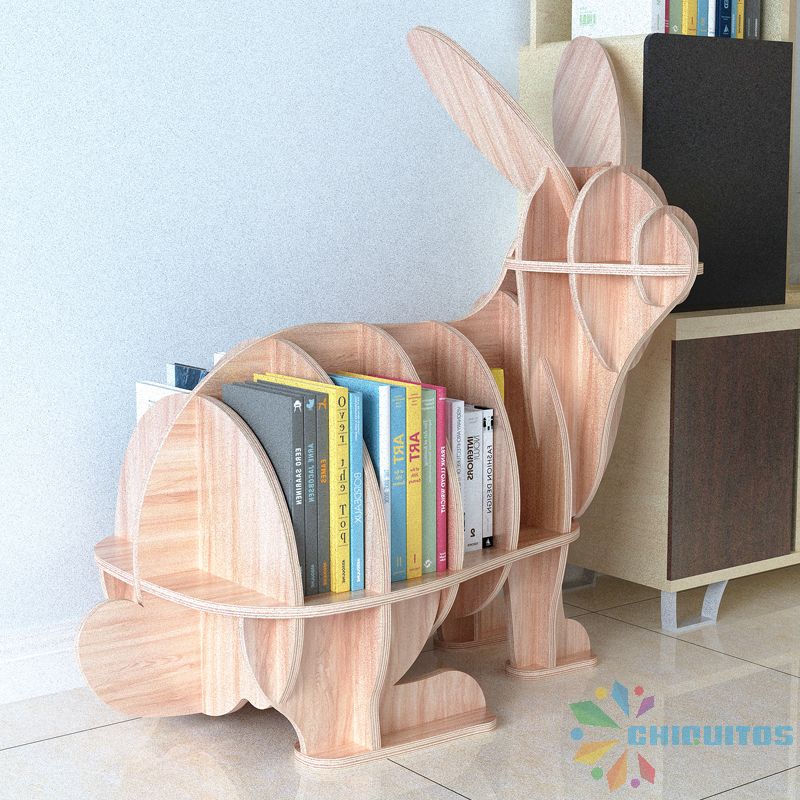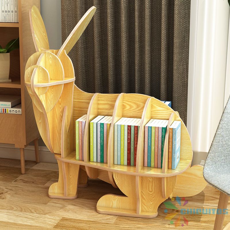 Chiquitos Children Adolescents Wooden Rabbit Shape Library Furniture Bookcase For Study Animal bookshelf kindergarten supplies