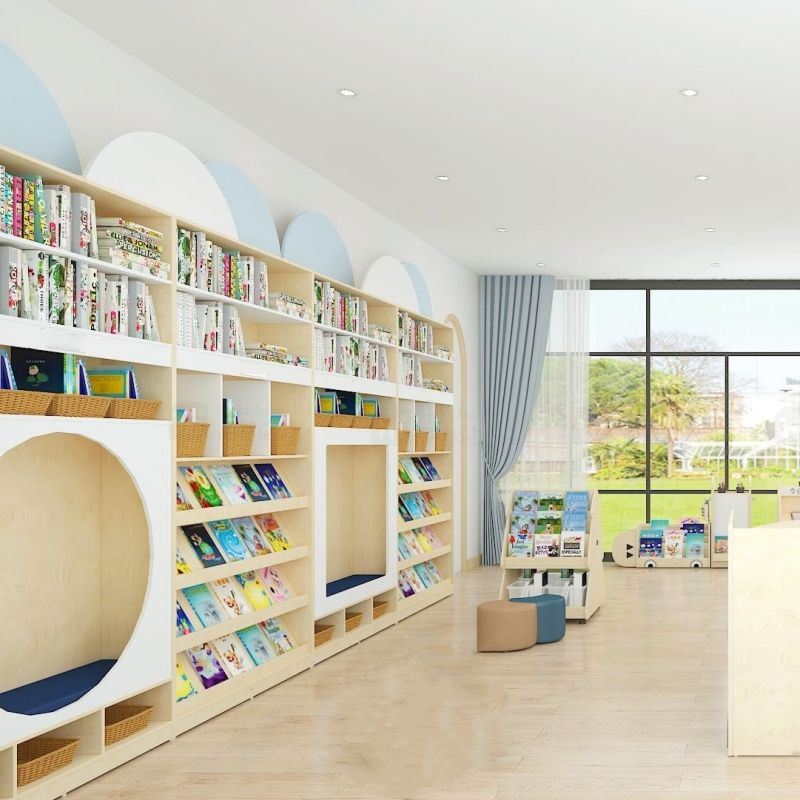 Chiquitos Colorful Kids Library Bookshelf With Comfy Reading Zone And Fun Toy Area