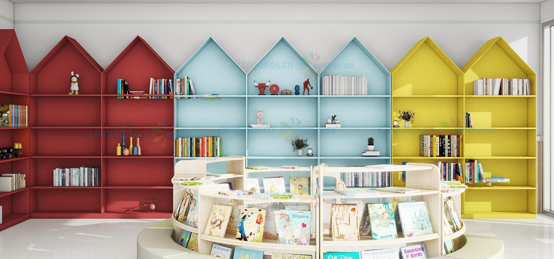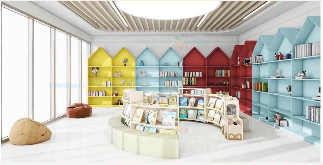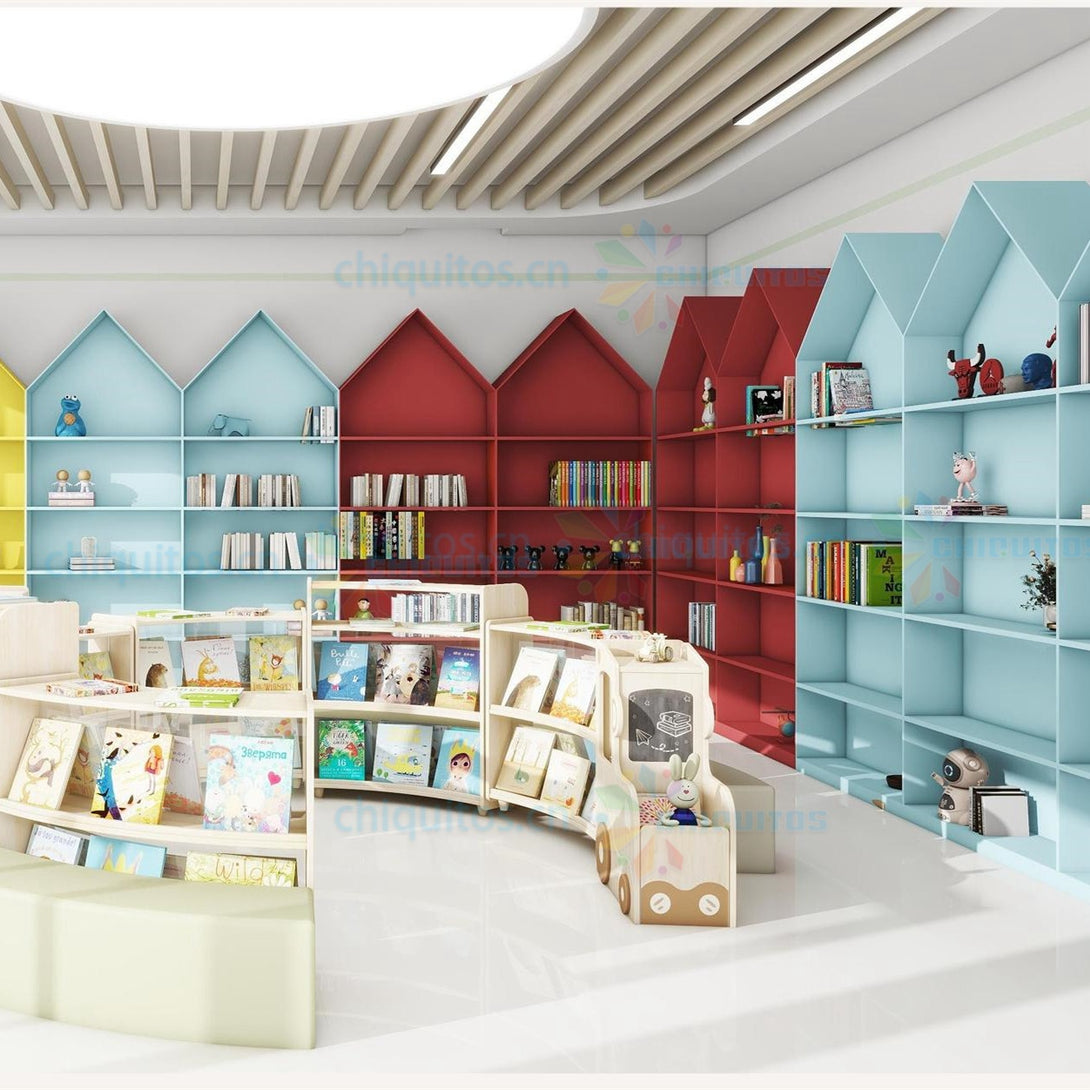 Chiquitos Creative Kids Library Furniture Set Colorful Bookshelves and Reading Area for Educational Spaces