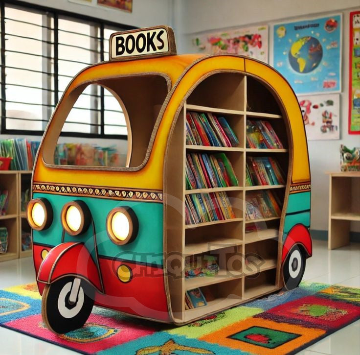 Chiquitos Creative Kindergarten Furniture Sets Transportation Shape Bookshelf Custom Design Storage Wall for Learning Spaces