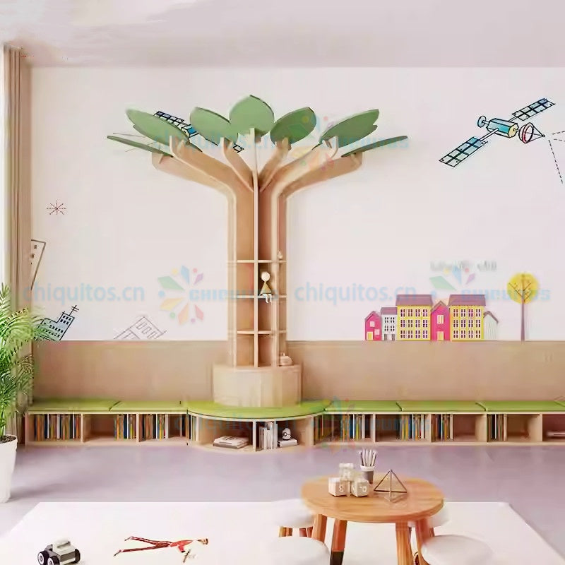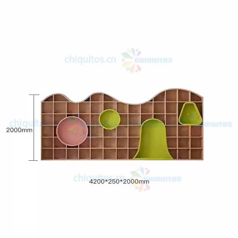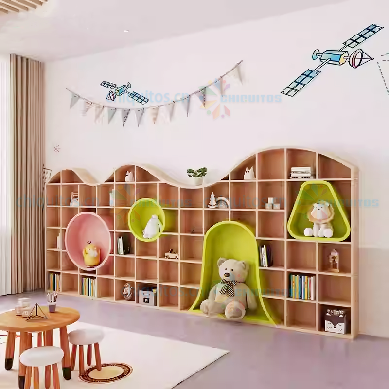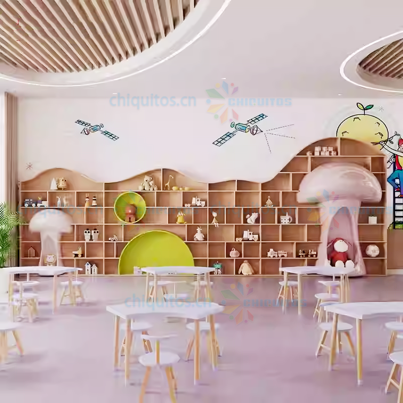 Chiquitos Creative Kindergarten Furniture Sets with Mushroom Bookshelf and Wave-Shaped Storage Wall for Modern Learning Spaces