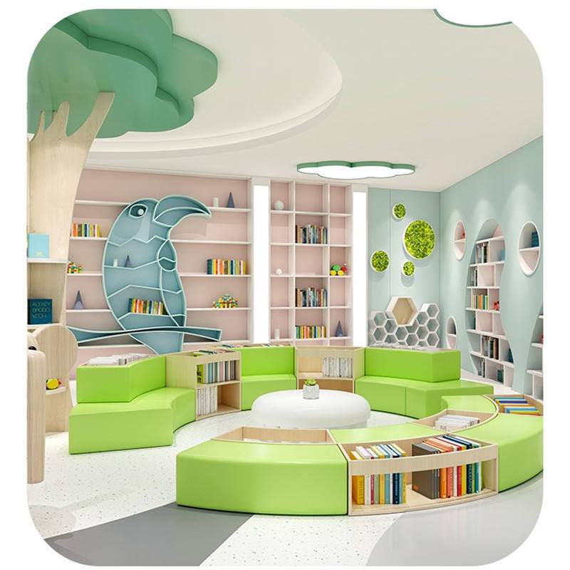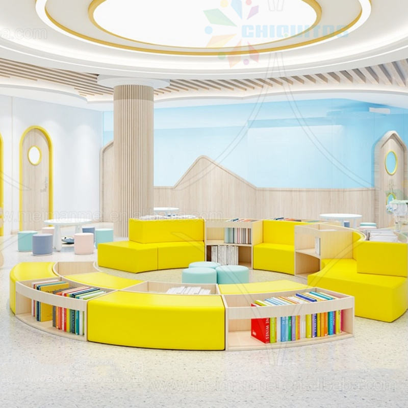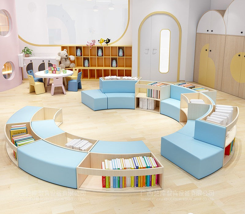Chiquitos Curved Chair Bookshelves Corner Area Kindergarten Furniture Nursery Sofa Table And Chair Wooden Study Bookshelves