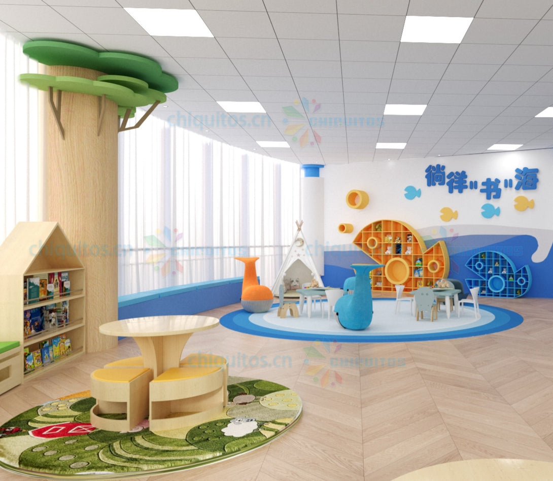 Chiquitos Custom Kids Library Furniture Creative Bookshelf Seating Play Area for Educational Spaces