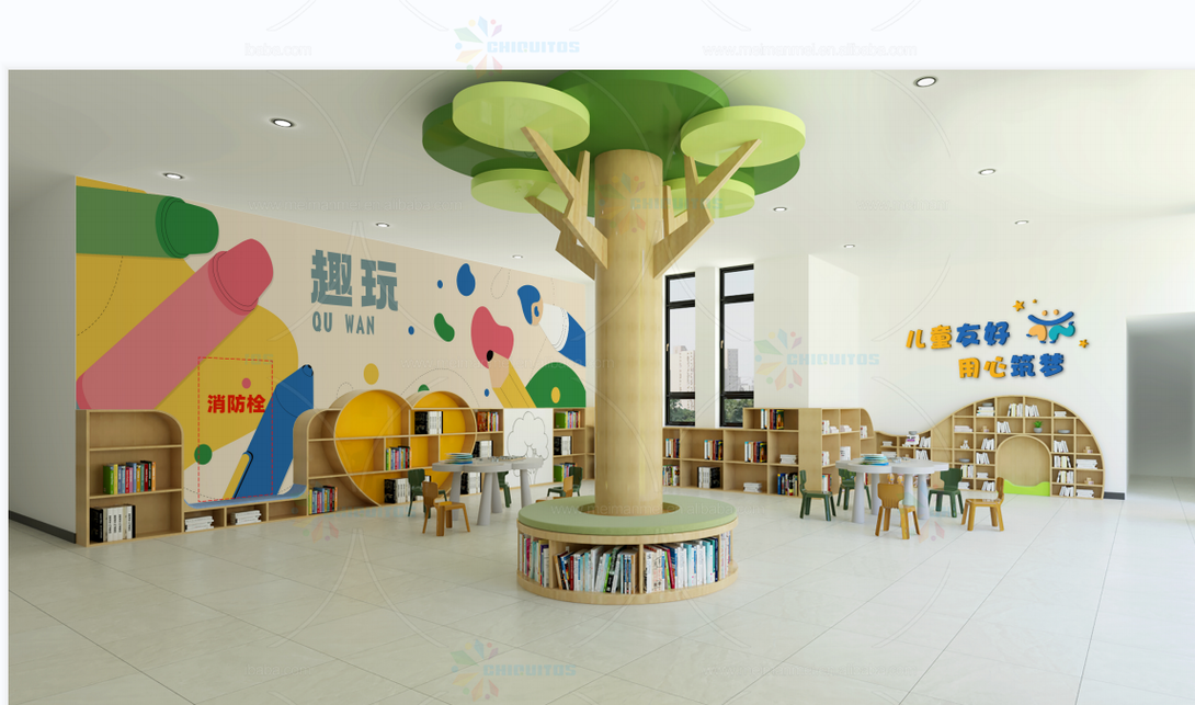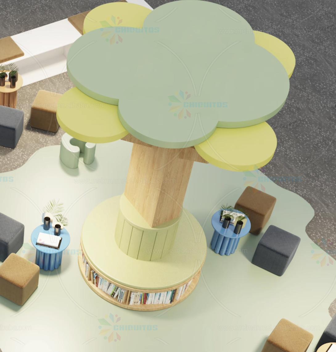 Chiquitos Custom Tree-Shaped Wooden Bookcase Design Special-Shaped Bookshelf Floor Standing School Library Bookshelf