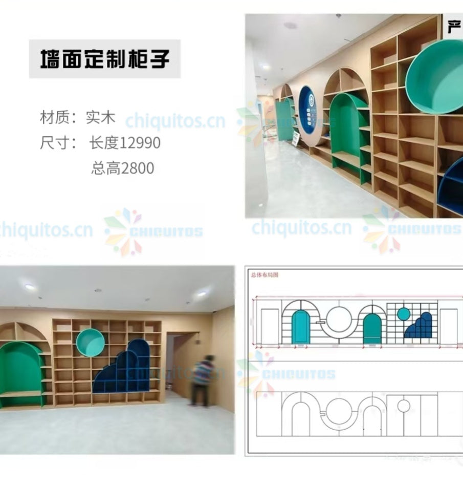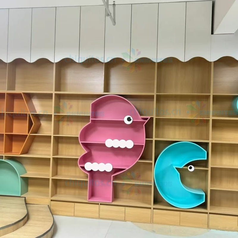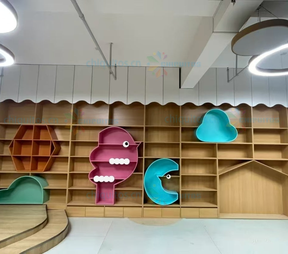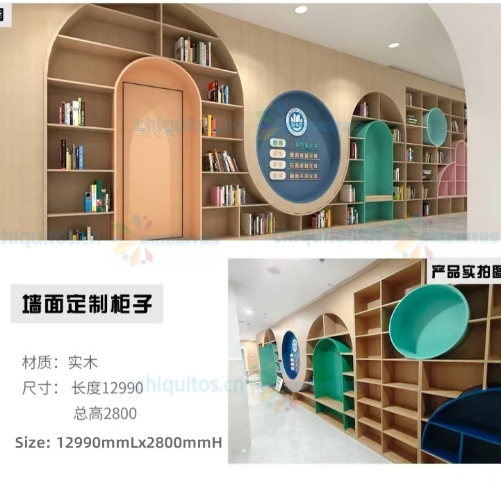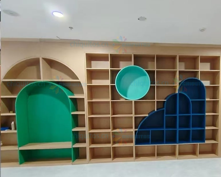Chiquitos Custom Wooden Modular Bookshelf System with Playful Arch and Circular Designs for Kids Spaces