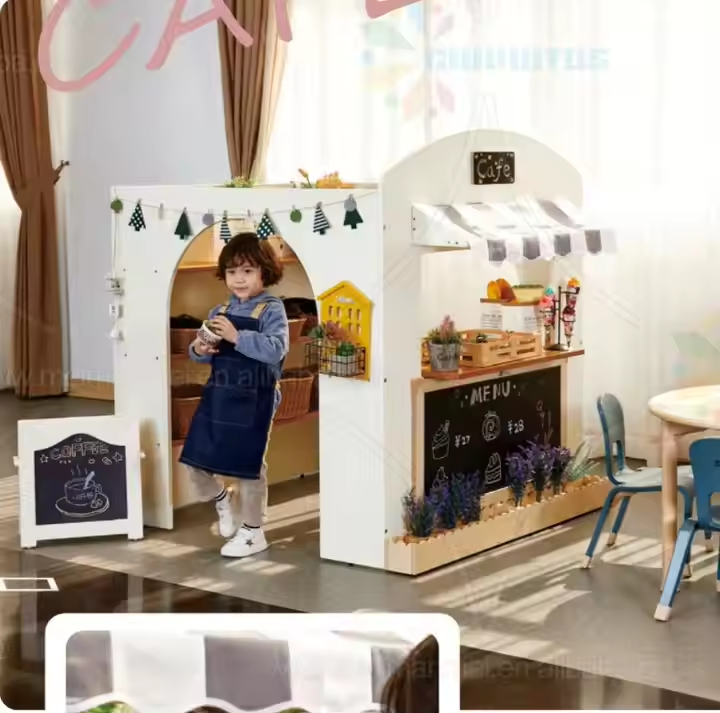 Chiquitos Customizable Design Children's Pretend Play Town Mini City Role Play House with Wooden Furniture for Indoor Playground