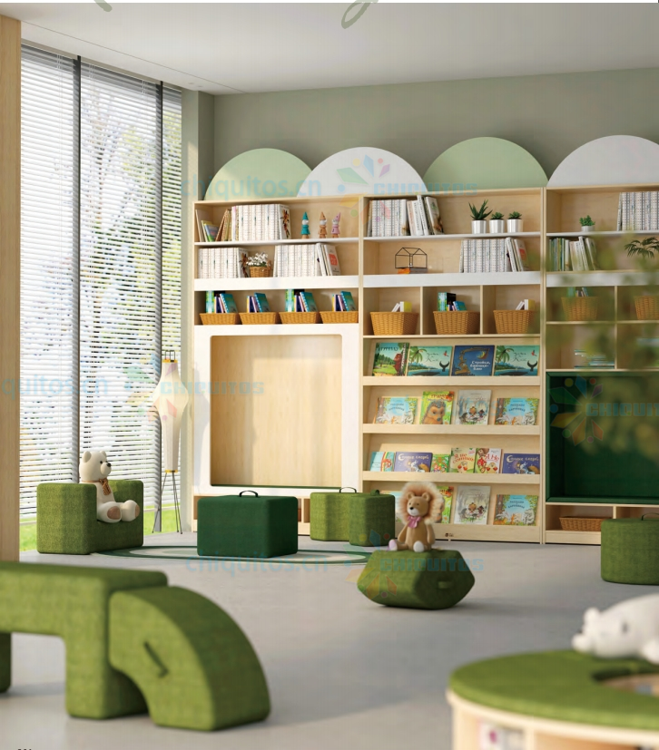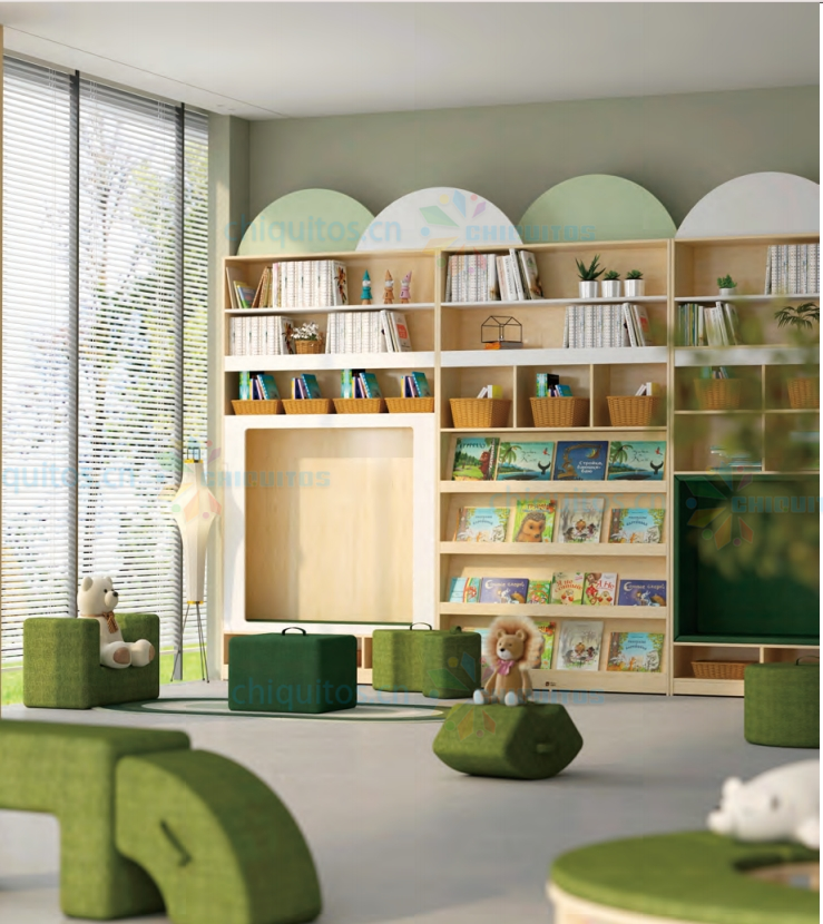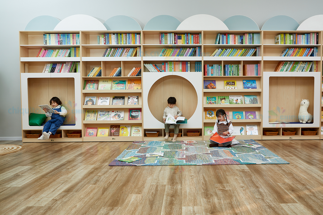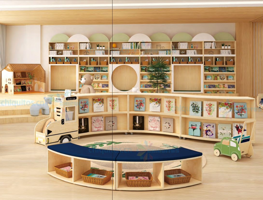 Chiquitos Customizable Kids Reading Corner Furniture Wooden Bookshelf Set for Kindergarten and Early Education