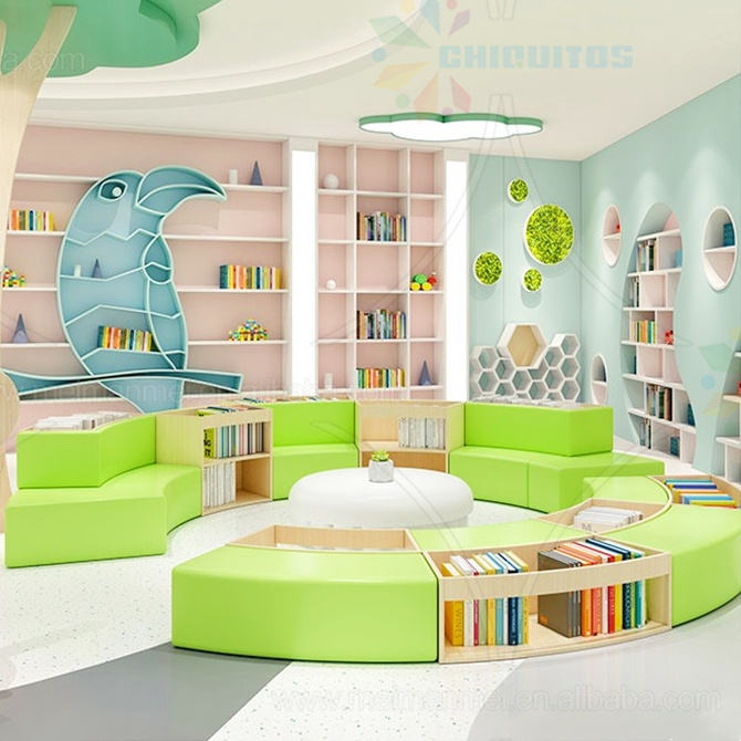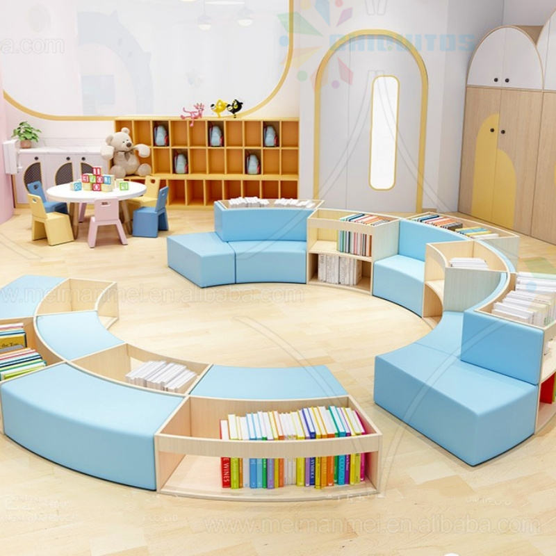 Chiquitos Customized Early Education Training Kindergarten Curved Bench Bookshelf Hall Reading Room Combination Sofa Stool