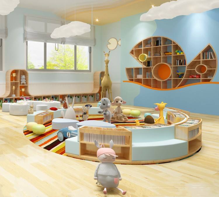 Chiquitos Customized Early Education Training Kindergarten Curved Bench Bookshelf Library l Community Reading Room Combination