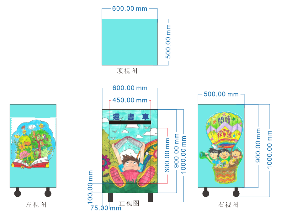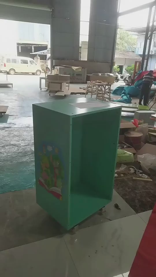 Chiquitos Customized New Bookcase Wood Board Color Printing Transport Car Book Storage Cabinet for Kindergarten Book Library