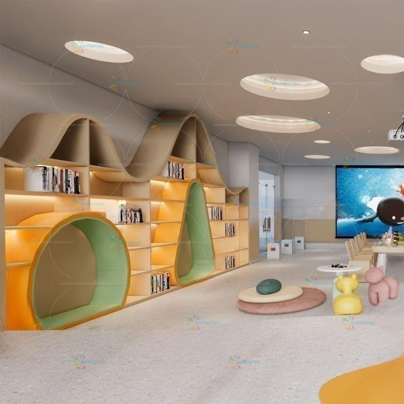 Chiquitos Customized reading room bookshelves kids furniture sets for elementary school library kindergarten daycare center