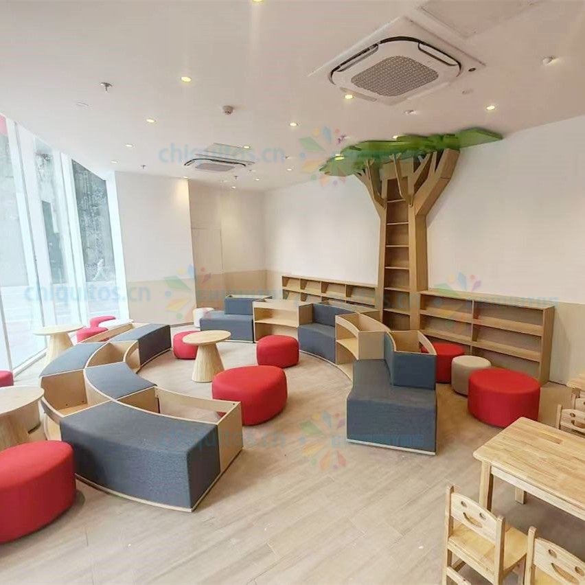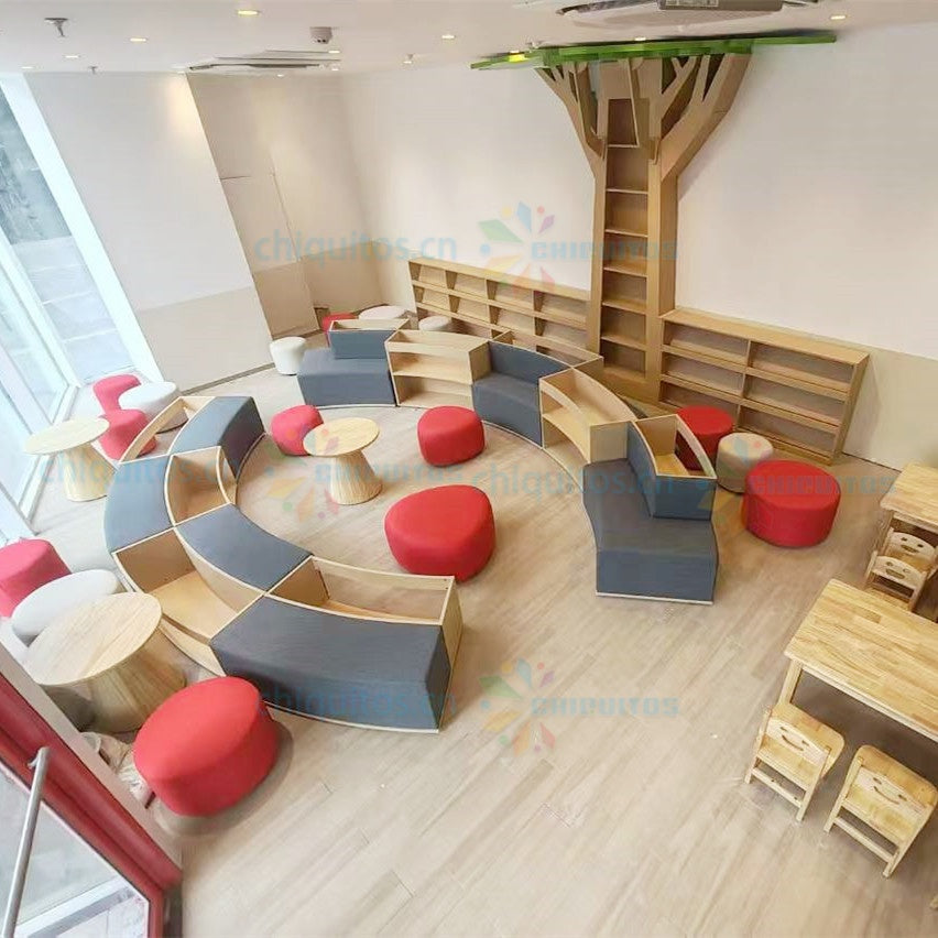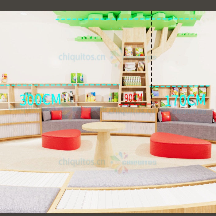 Chiquitos Customized Wooden Kids Library Furniture Reading Area with Bookshelves and Seating