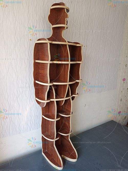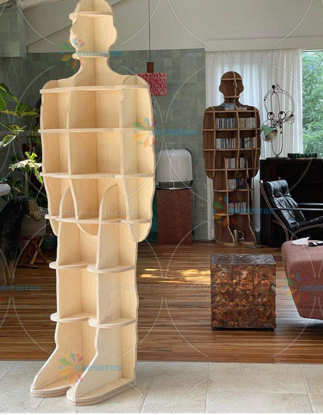Chiquitos European style wooden creative humanoid bookshelf decoration design display window for library restaurant coffee shop