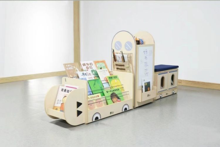 Chiquitos Handmade Customizable Wood Kids Reading Train Bookshelf Bookcase for Library Kindergarten Preschool Nursery Montessori