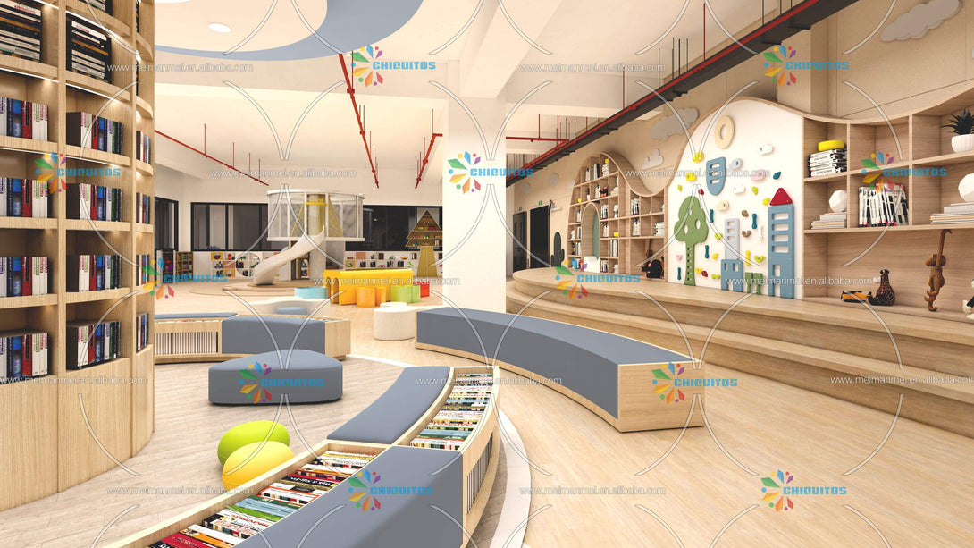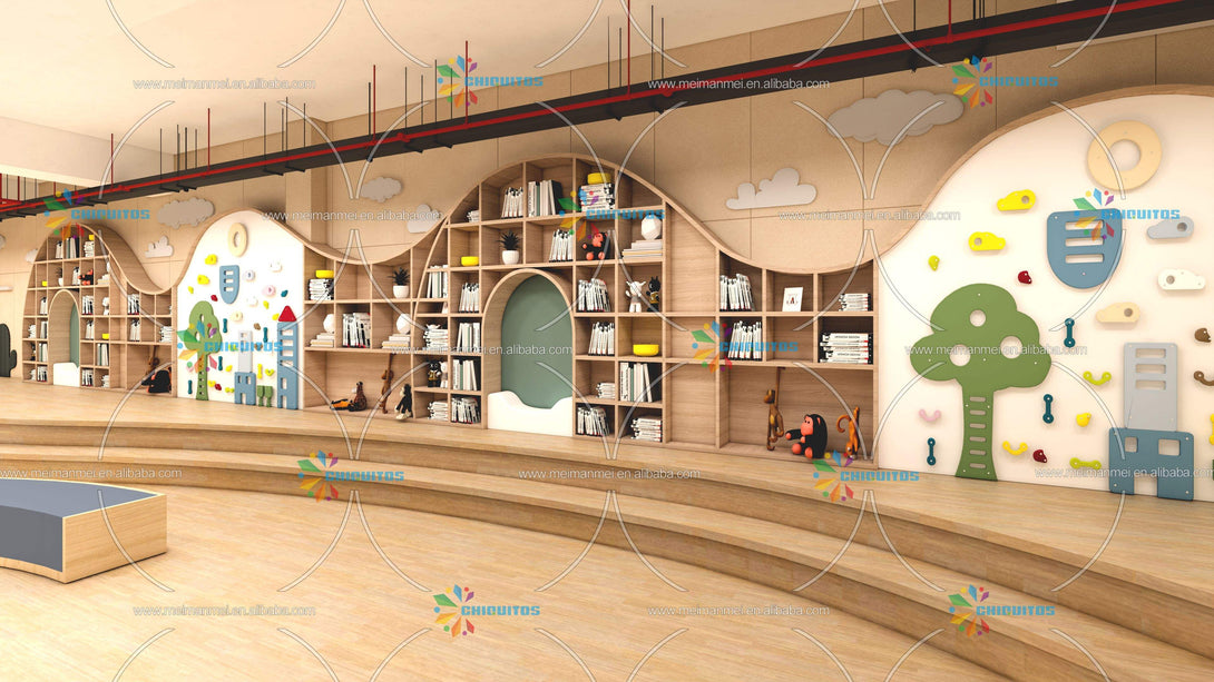 Chiquitos High Quality Kindergarten Library School Creative Bookshelf Bookcase Full Wall Kids Wooden Bookshelf