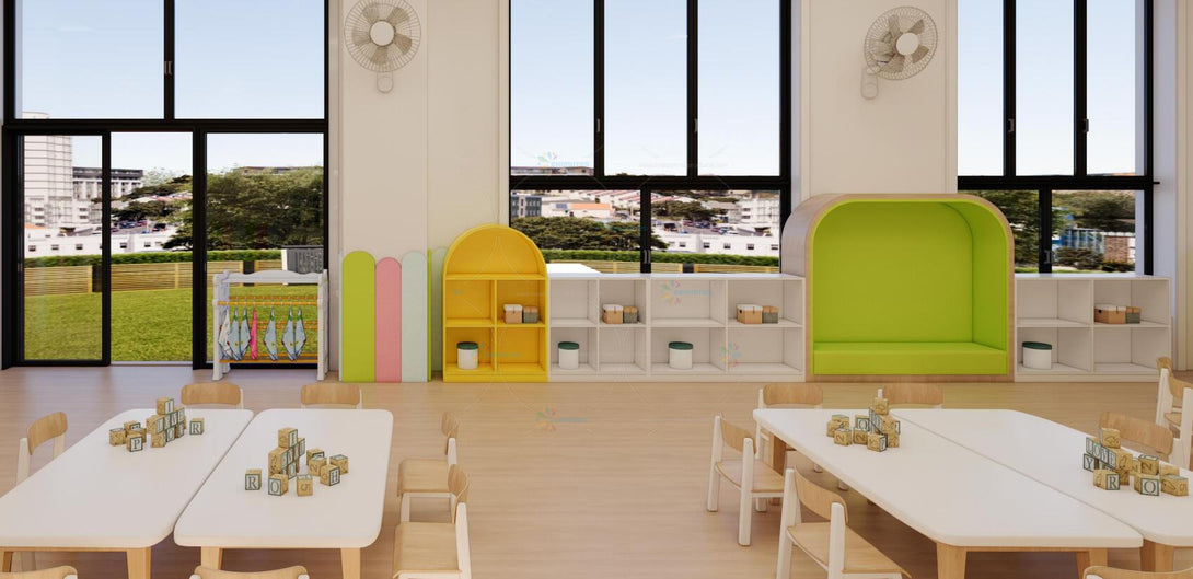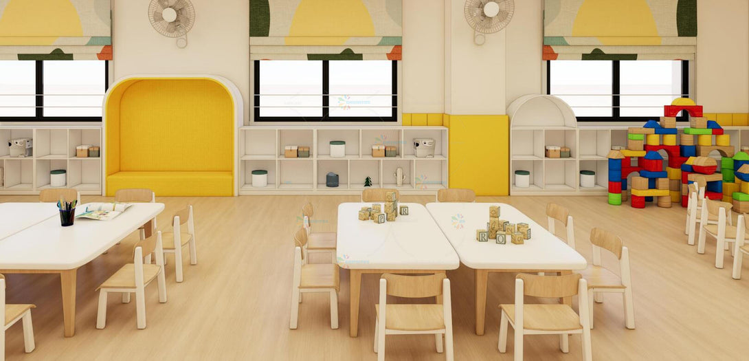 Chiquitos Hot selling kindergarten furniture set Wooden kindergarten seats children's day care stool chair table set