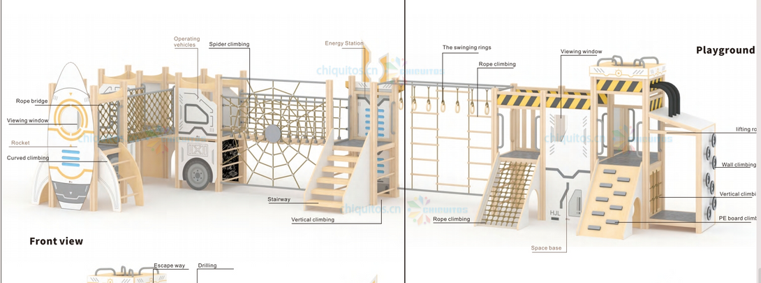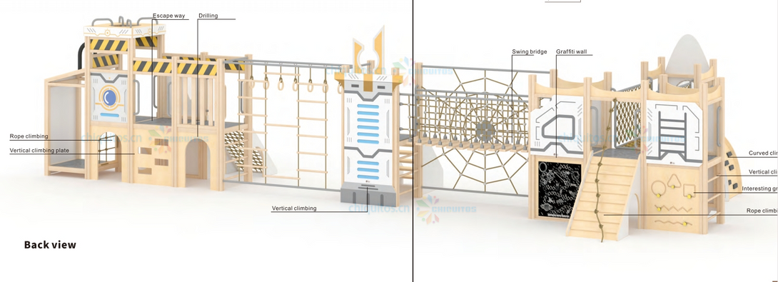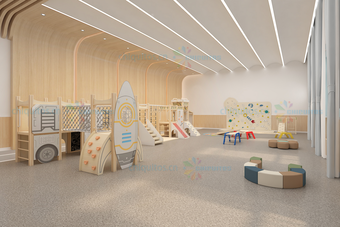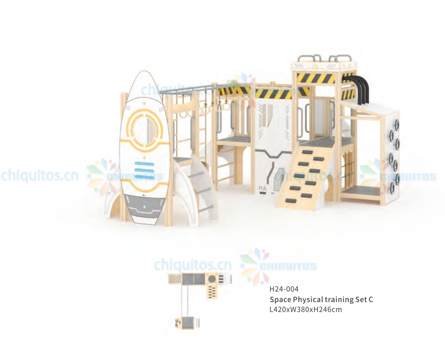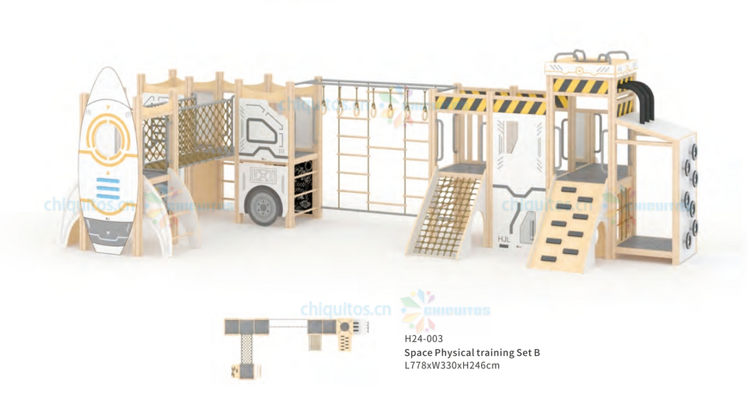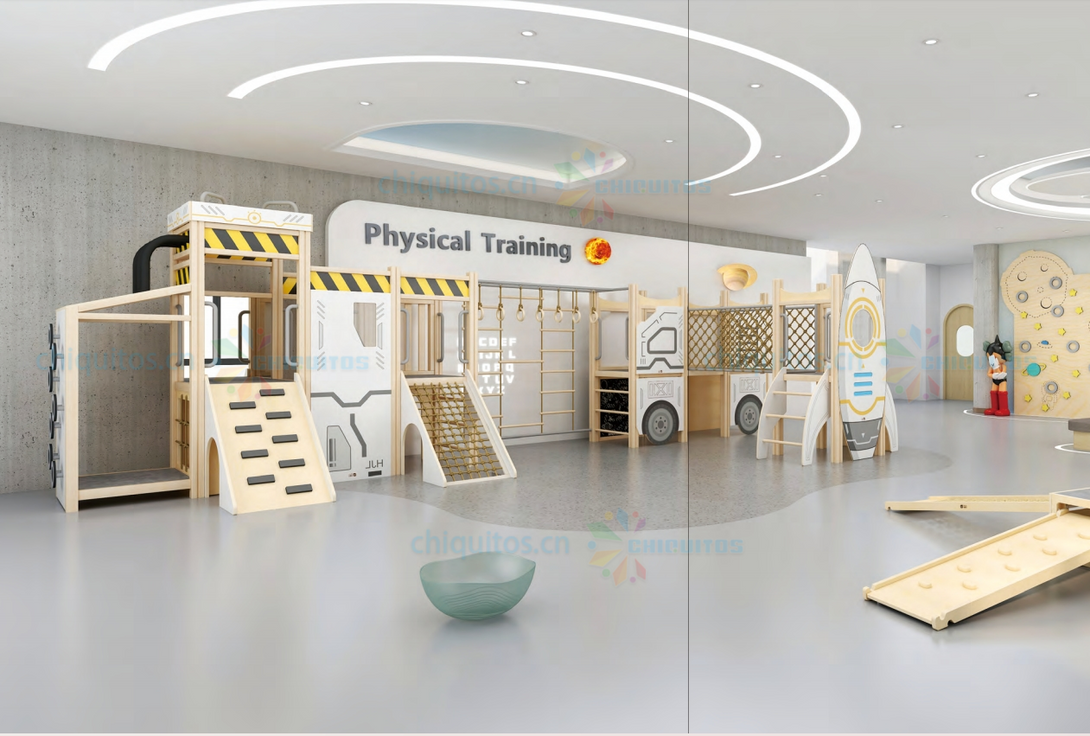 Chiquitos Indoor Playground Rocket Themed Kids Play Area Wooden Climbing Frames Adventure Play set Early Learning Activity