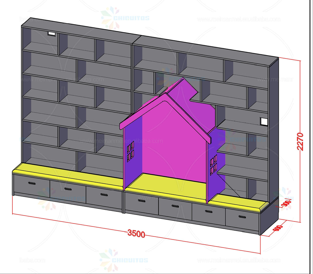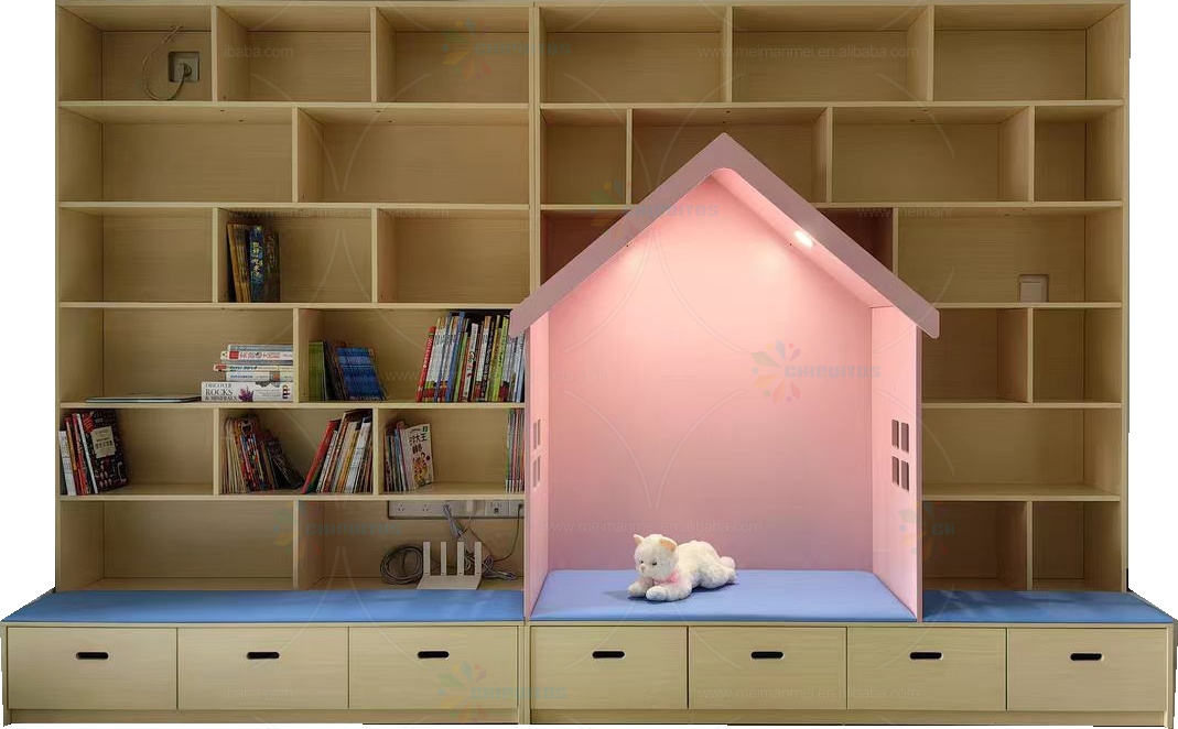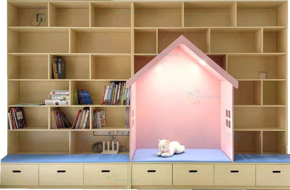 Chiquitos KIDS home furniture custom bookshelf House shape kids wooden library wall bookcase luxury decorate Australia Hot Sale
