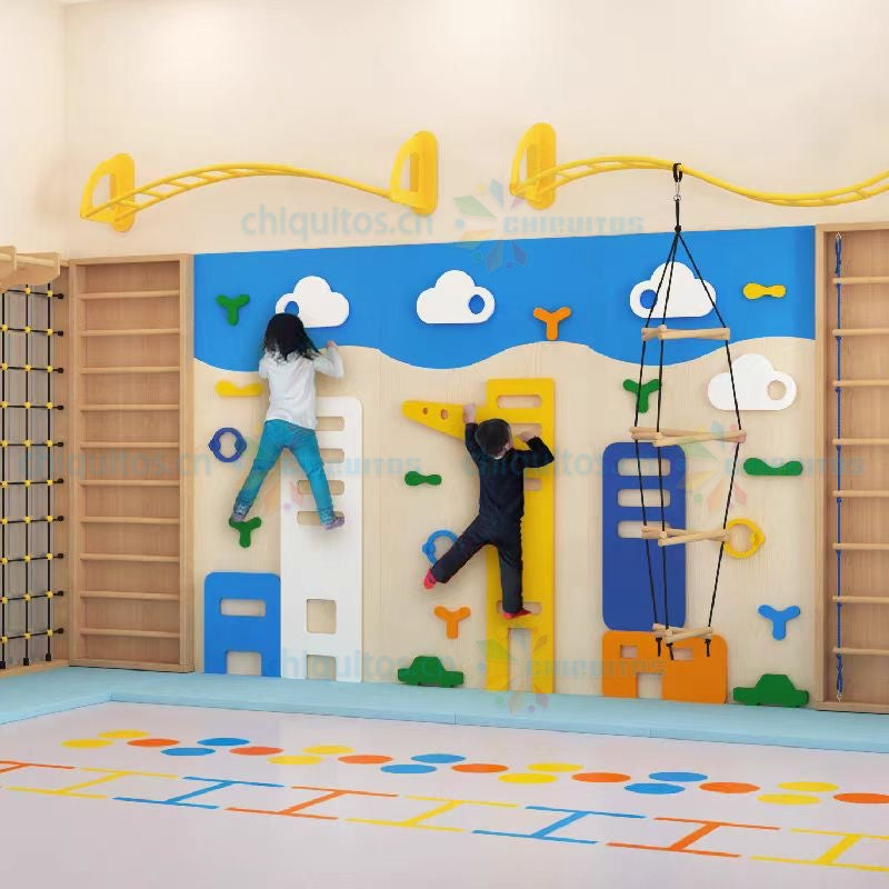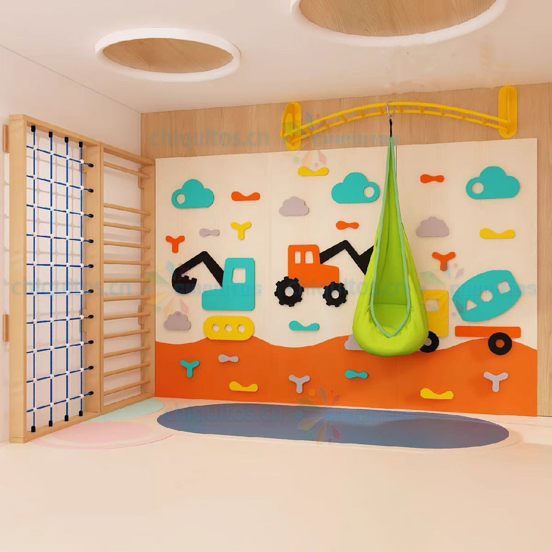 Chiquitos Kids Indoor Climbing Wall with Swing Pla yset Creative Activity Center for Early Development