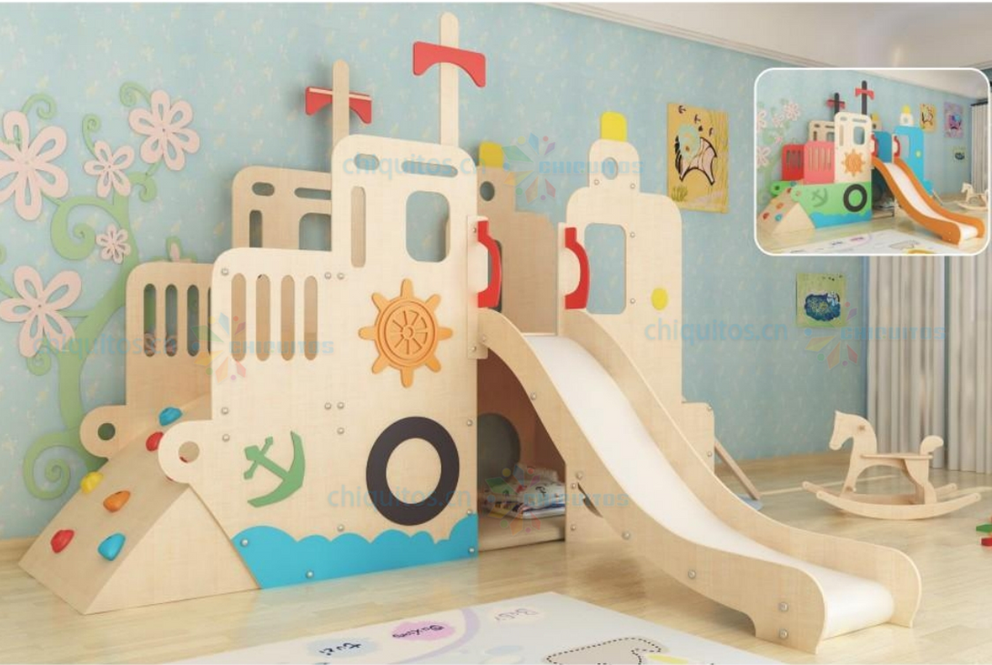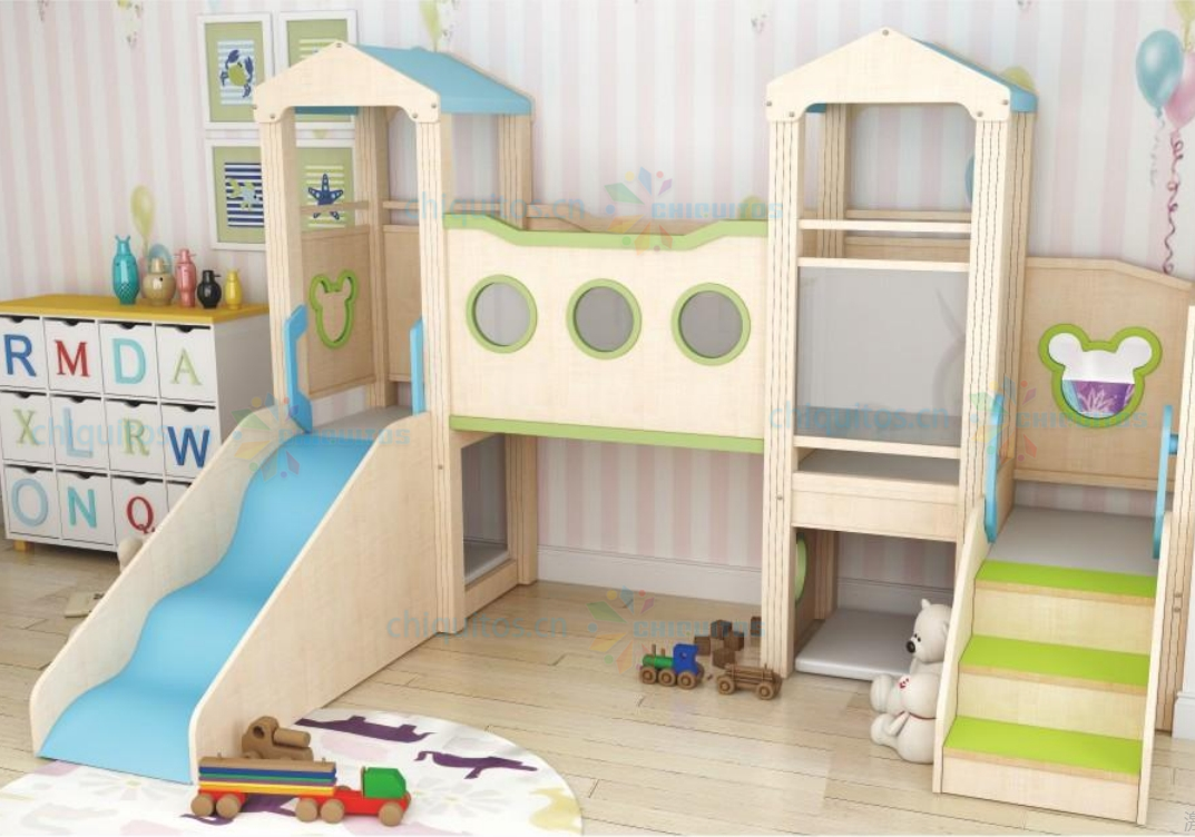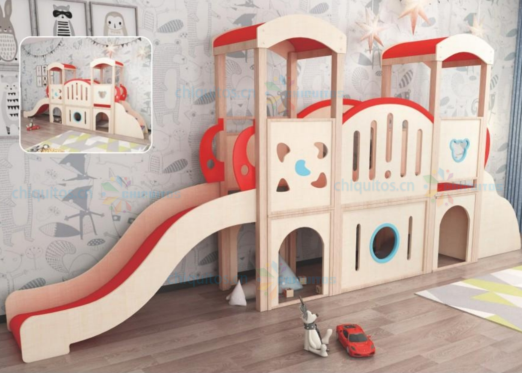 Chiquitos Kids Indoor Wooden Playhouse with Slide Tunnel and Climbing Steps for Fun and Safe Playtime