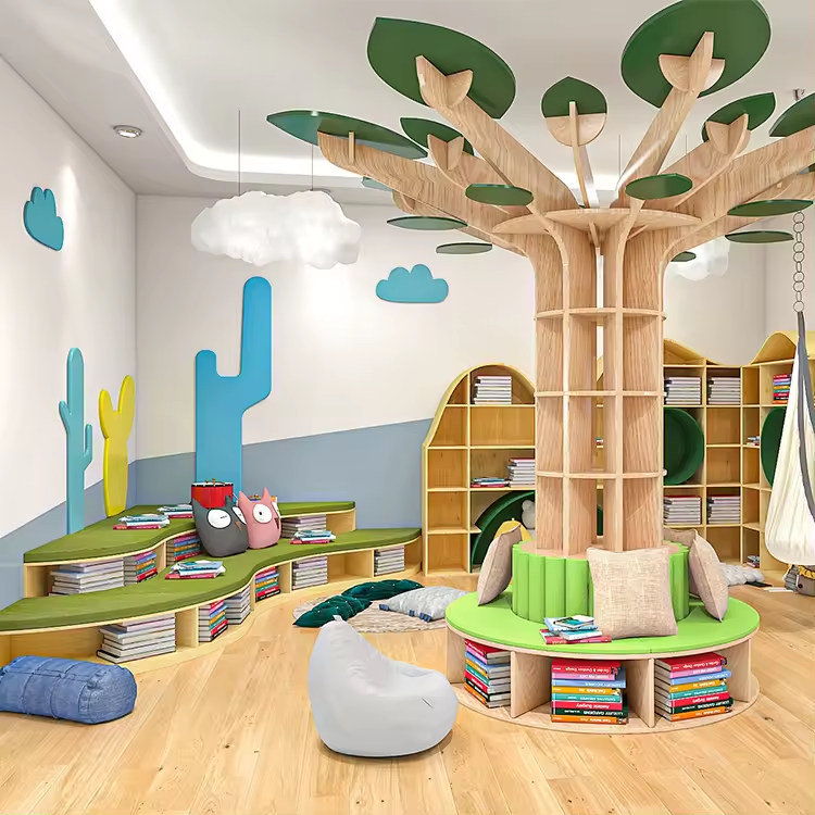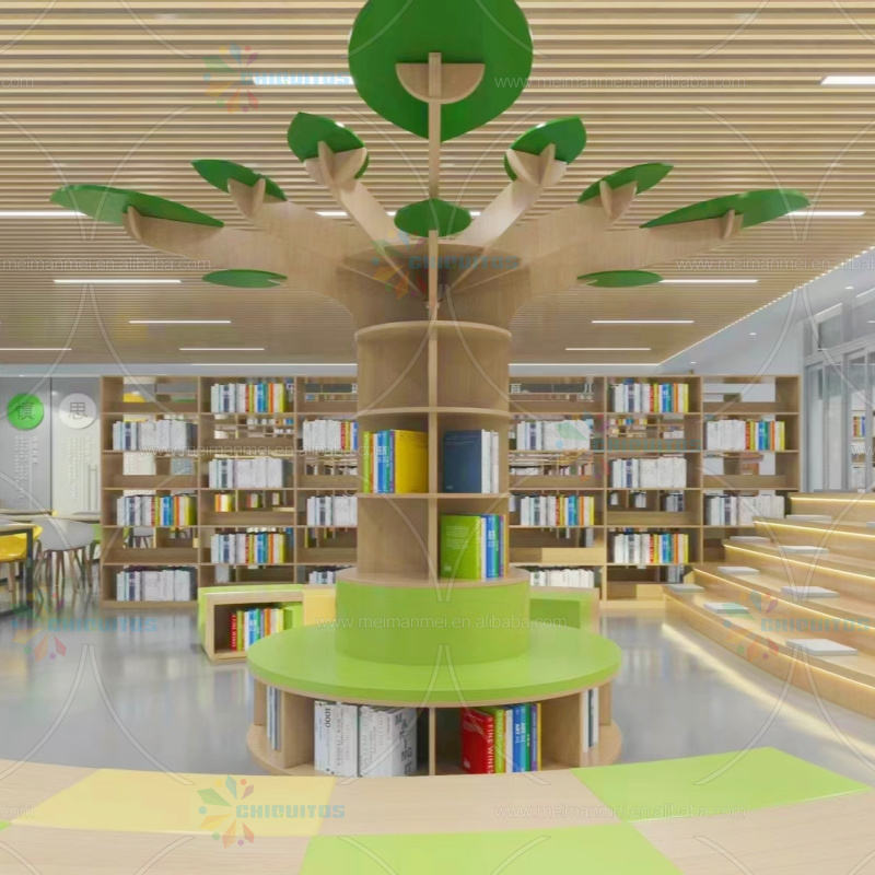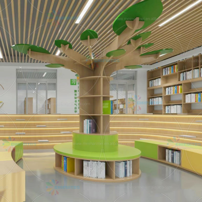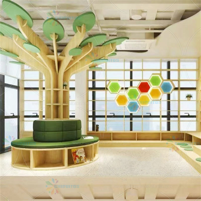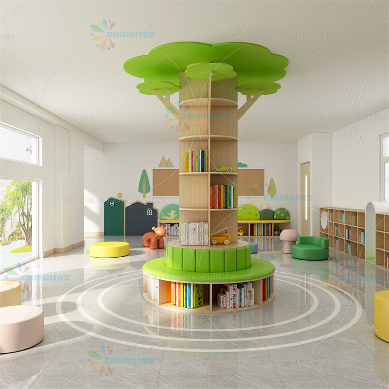 Chiquitos kids library furniture luxury library decorate Australia Hot Sale Kids Wooden Reading Bench Tree Shaped Bookshelf