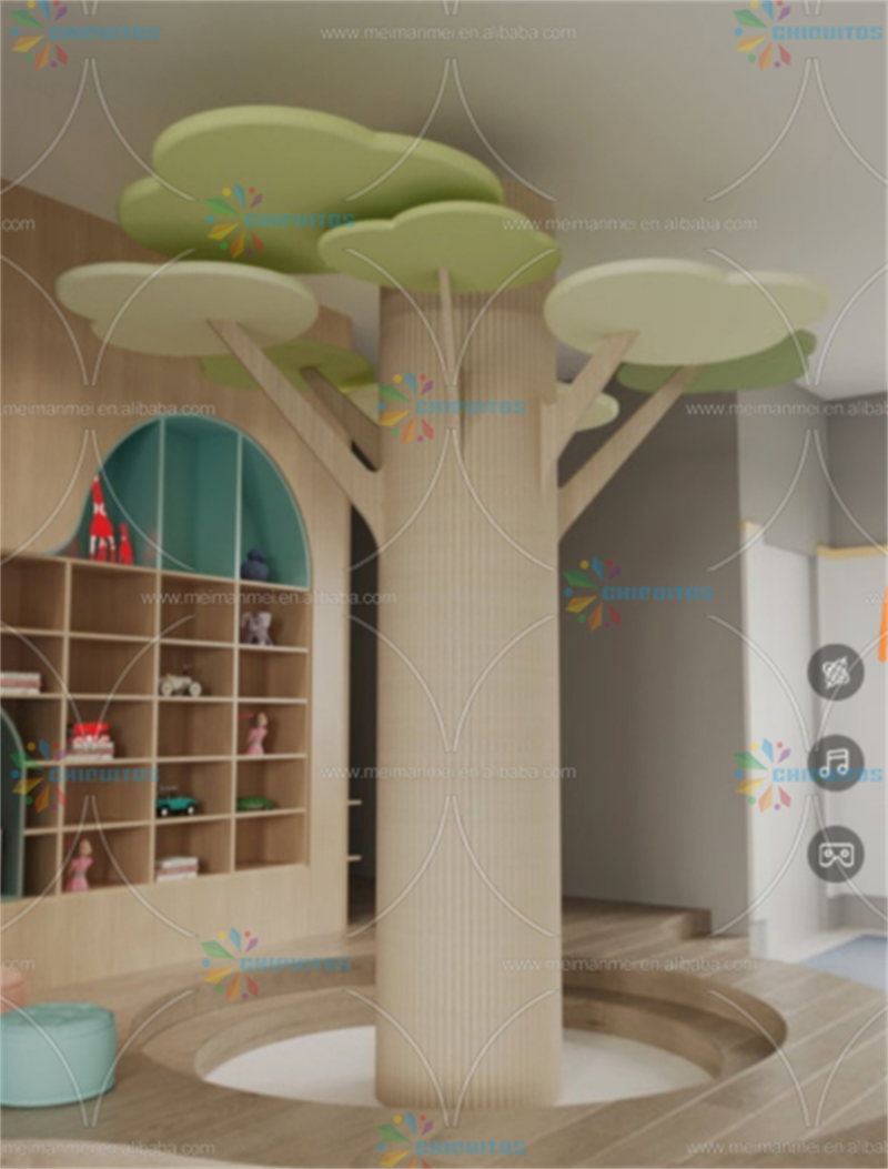Chiquitos Kindergarten Children Wooden Tree Shape decorations Modern Wooden Floor Bookcase Storage Bookshelf Decorations