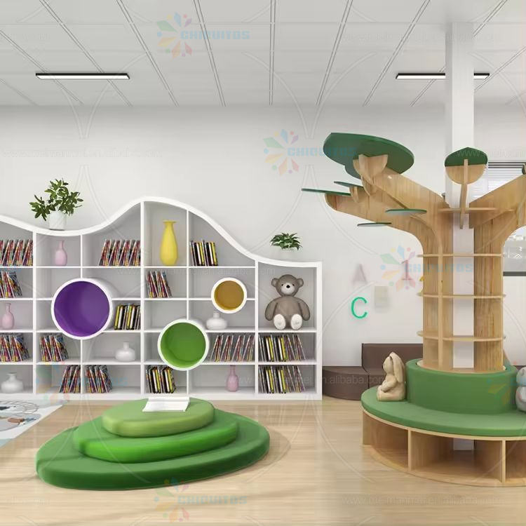 Chiquitos Kindergarten Furniture Daycare Bookshelves Preschool Furniture Wooden Tree shape Bookshelves For Child Care Centers