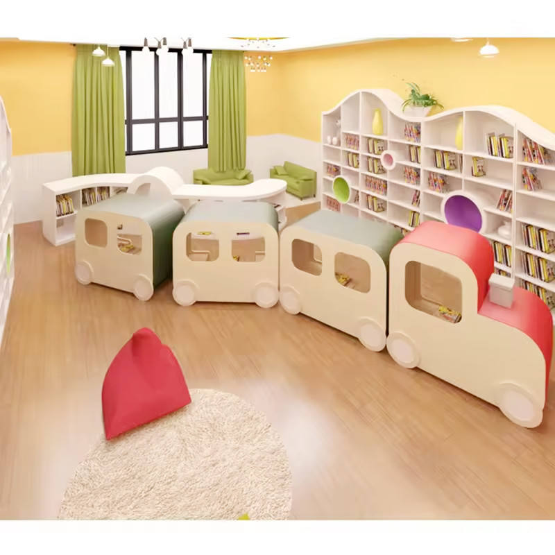 Chiquitos Kindergarten Library Design Storage Train Bookshelf Custom Creative Bookshelf Display Cabinet Montessori Furniture