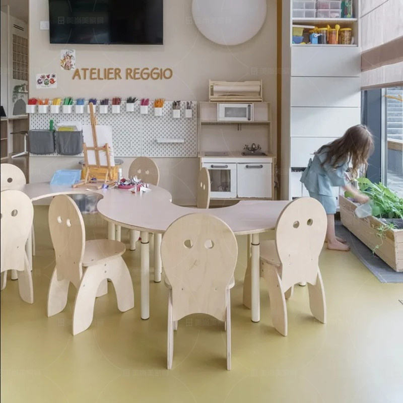 Chiquitos Kindergarten Preschool Wood Nordic Furniture Minimalist style Children School Study Reading Chair and Table for Kids