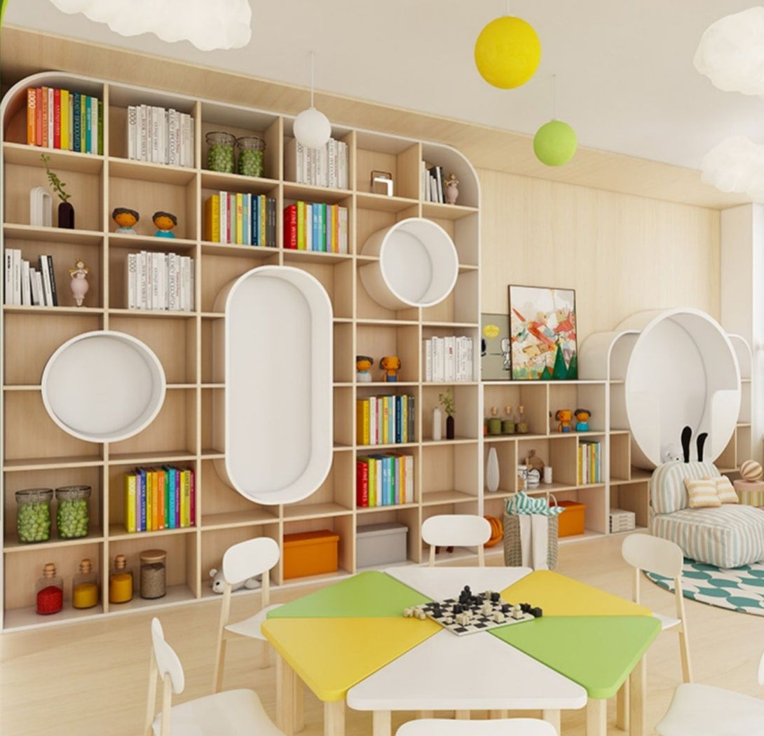 Chiquitos Library Daycare Furniture Kids Montessori reading corner Bookshelf Letter-shaped bookshelf library furniture modern