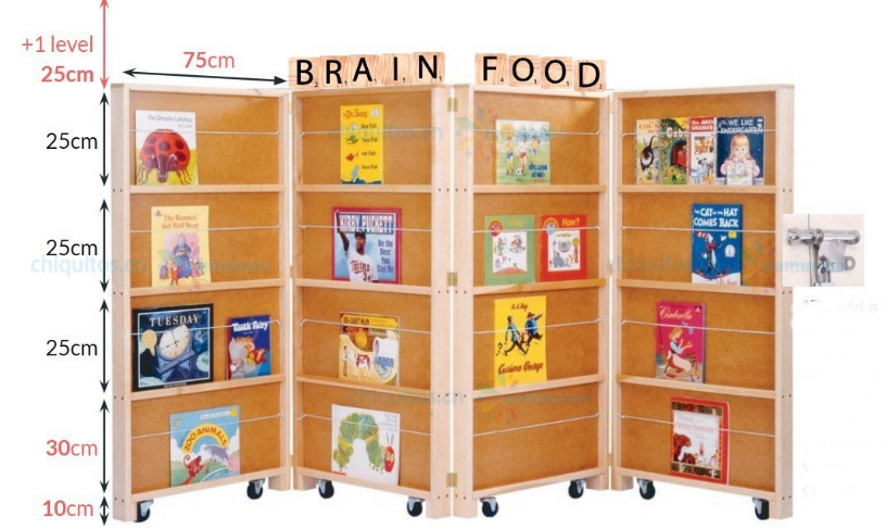 Chiquitos Mobile Foldable Wooden Book Display Stand on Wheels for Library and Classroom Storage Durable Multi-level Bookshelf