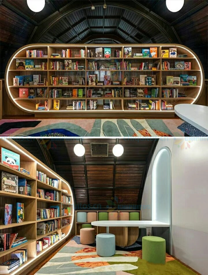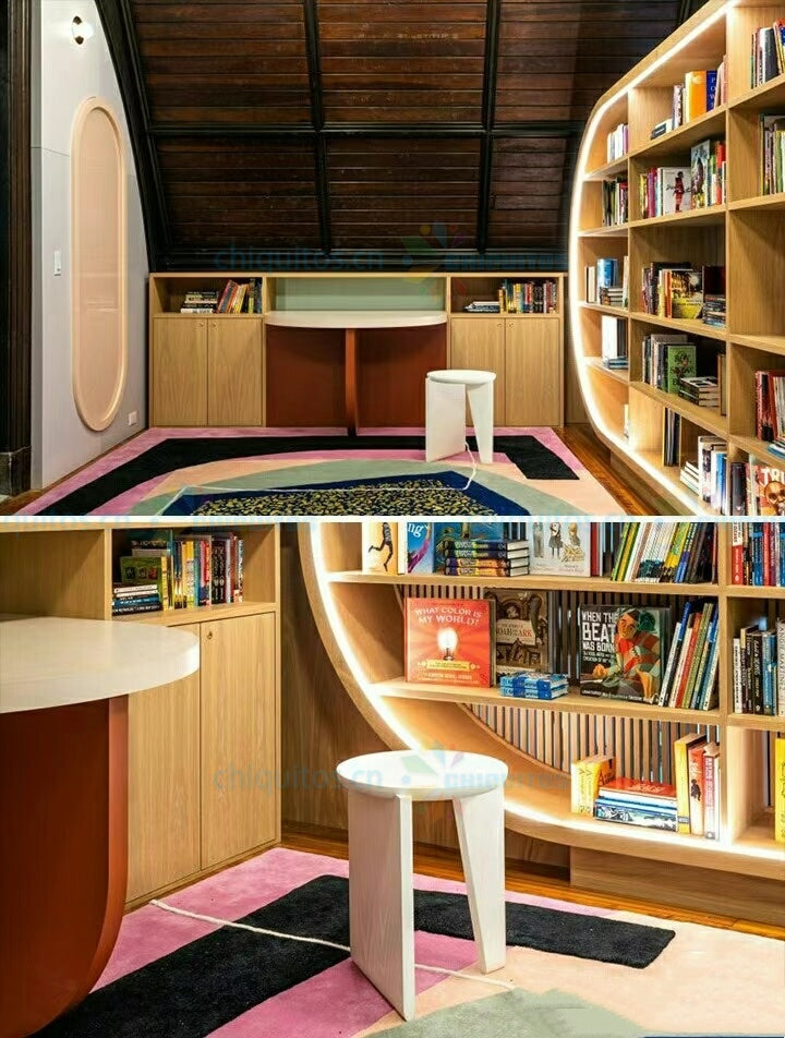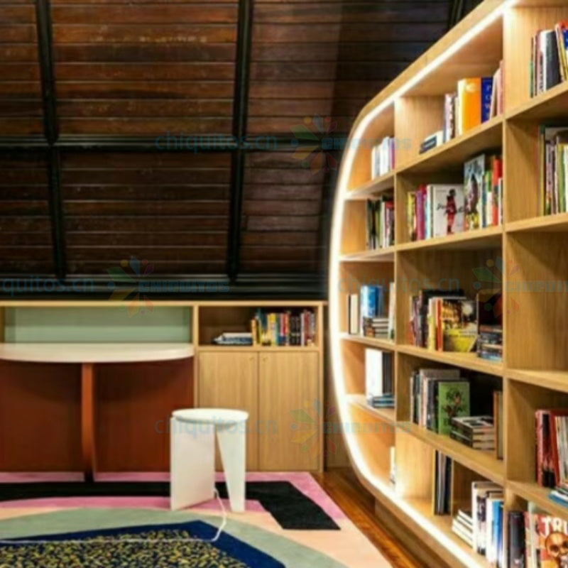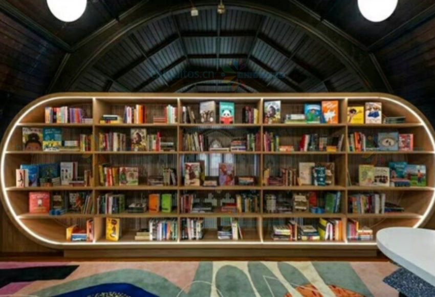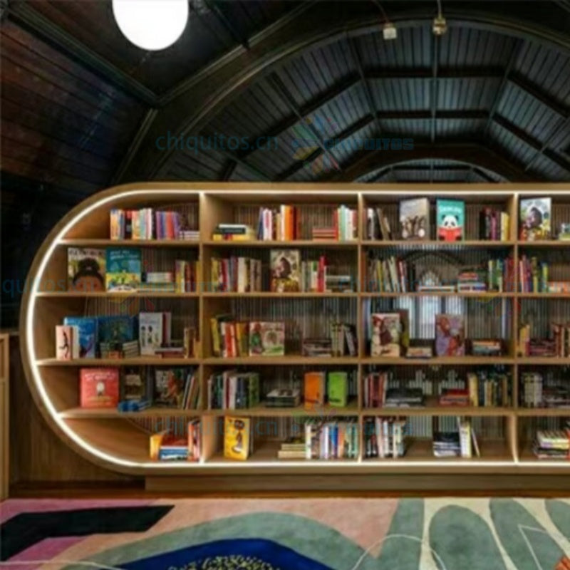 Chiquitos Modern Curved Wooden Bookshelf with LED Lighting for Libraries and Reading Rooms