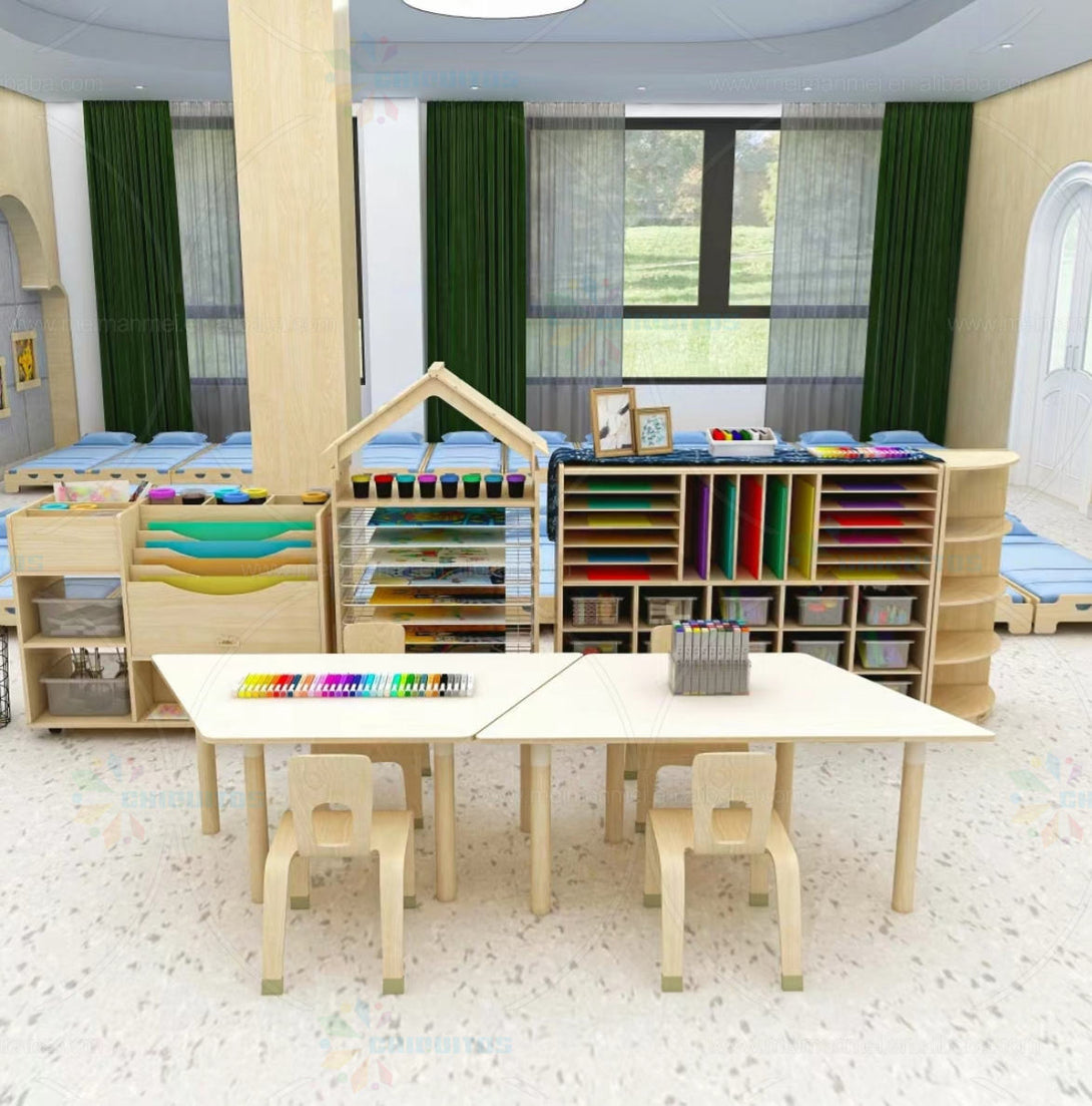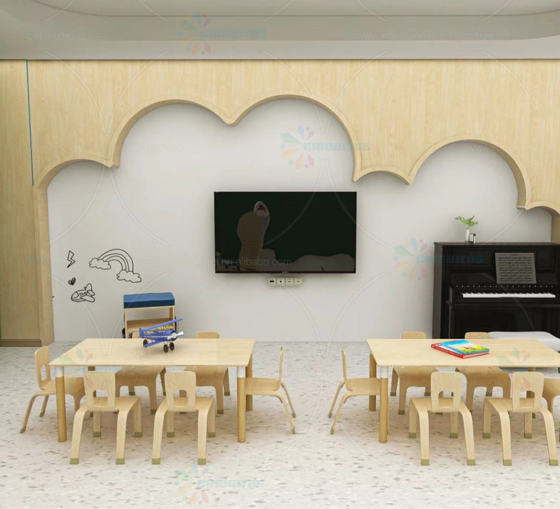 Chiquitos Modern Design Kid Toddler Study Table and Chair Set Wooden Furniture Set For Preschool Daycare Kindergarten Nursery
