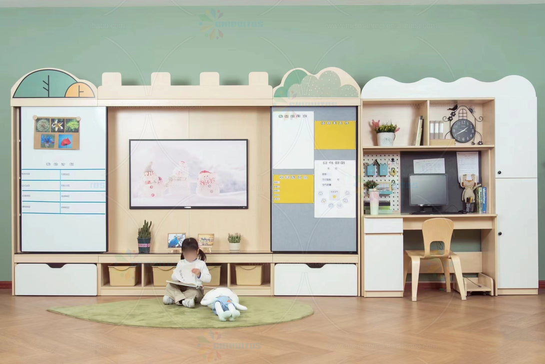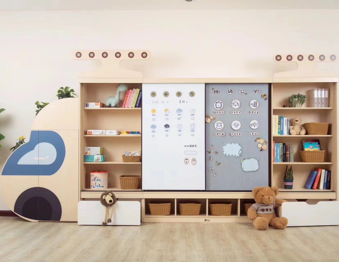 Chiquitos Modern Design Kid Wooden Montessori Furniture Set Car-Shaped Bookshelf Can Accommodate TV Kids Multifunctional Cabinet