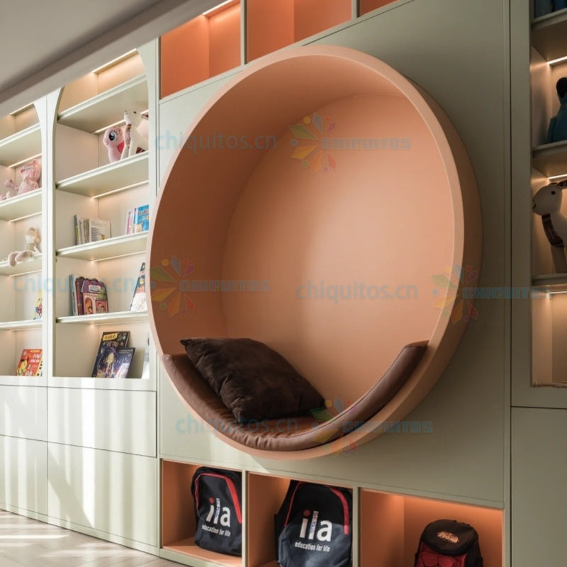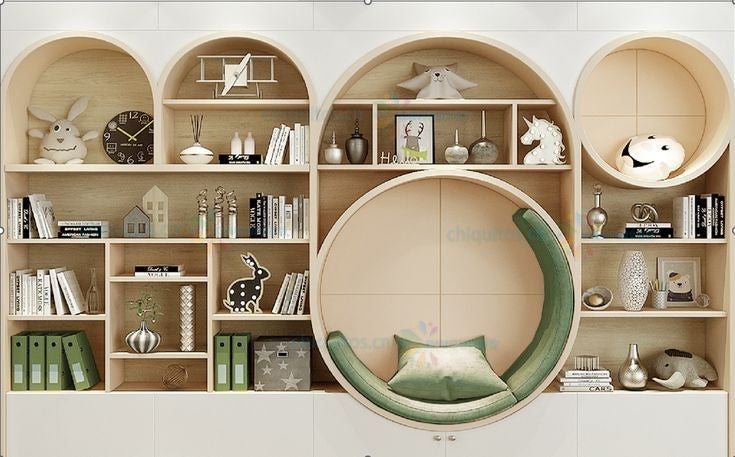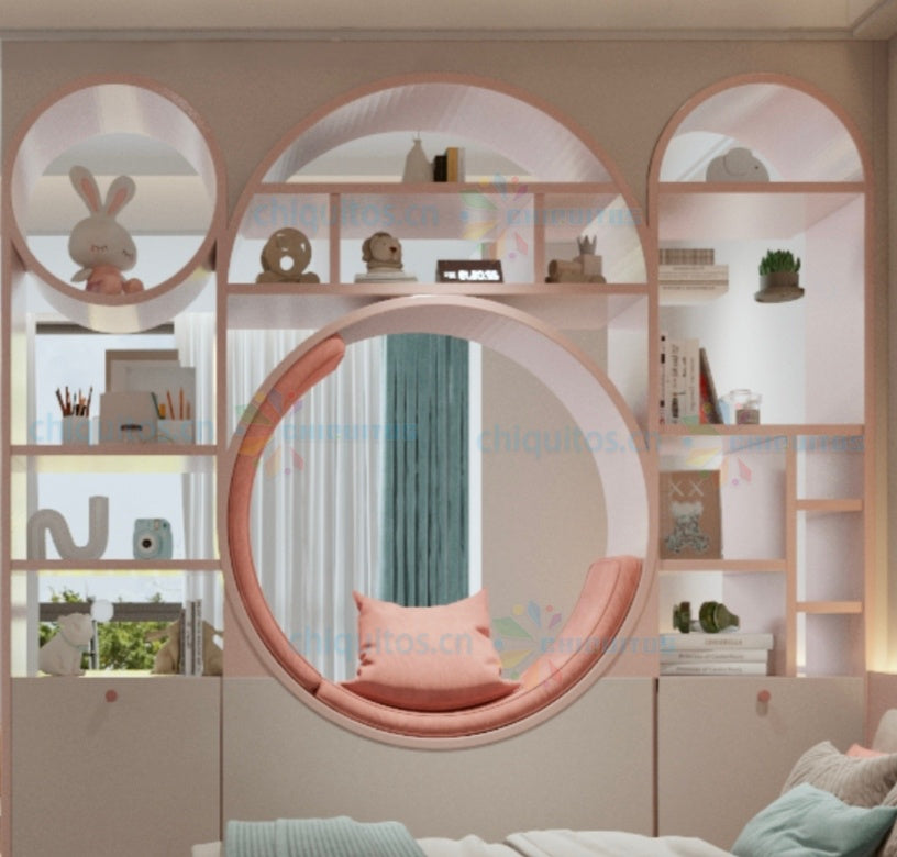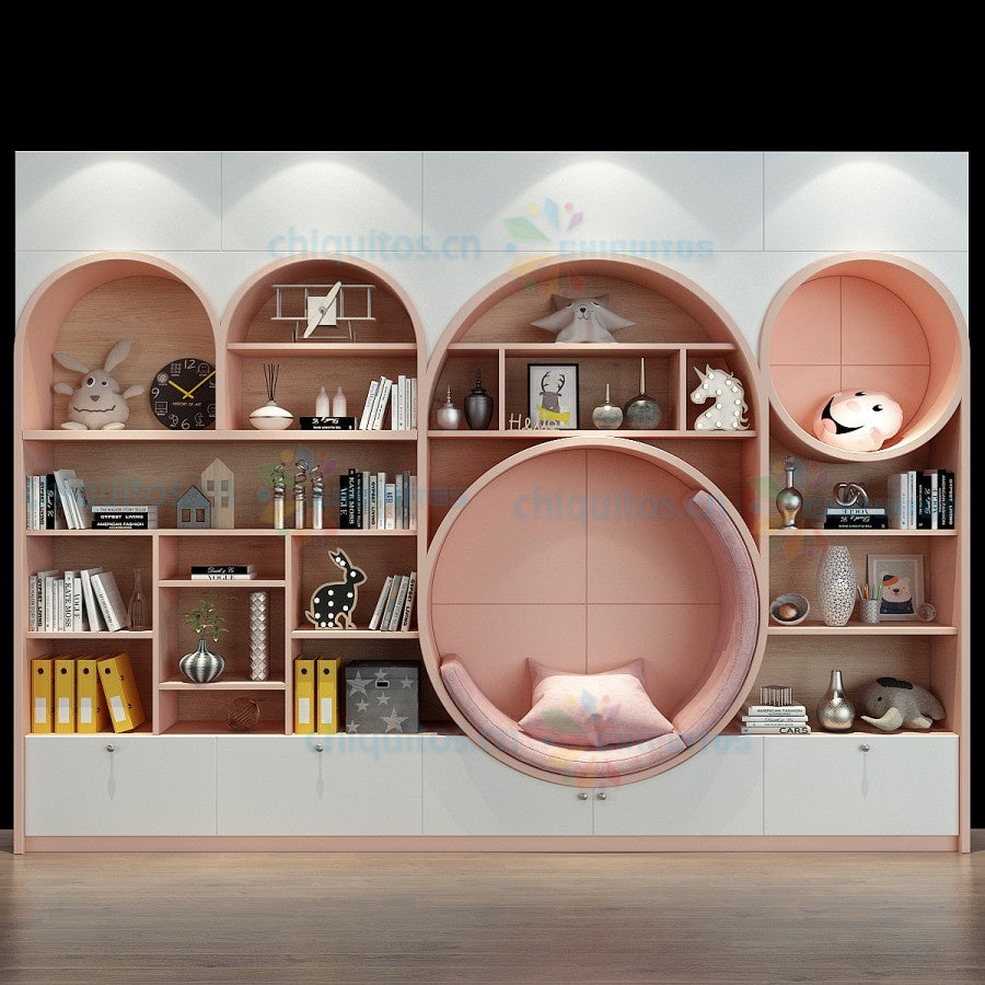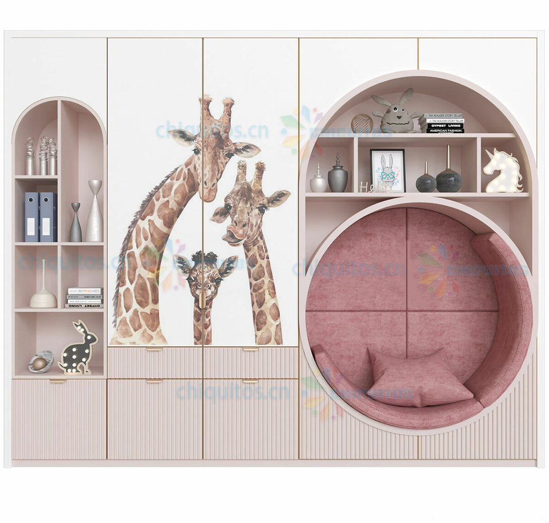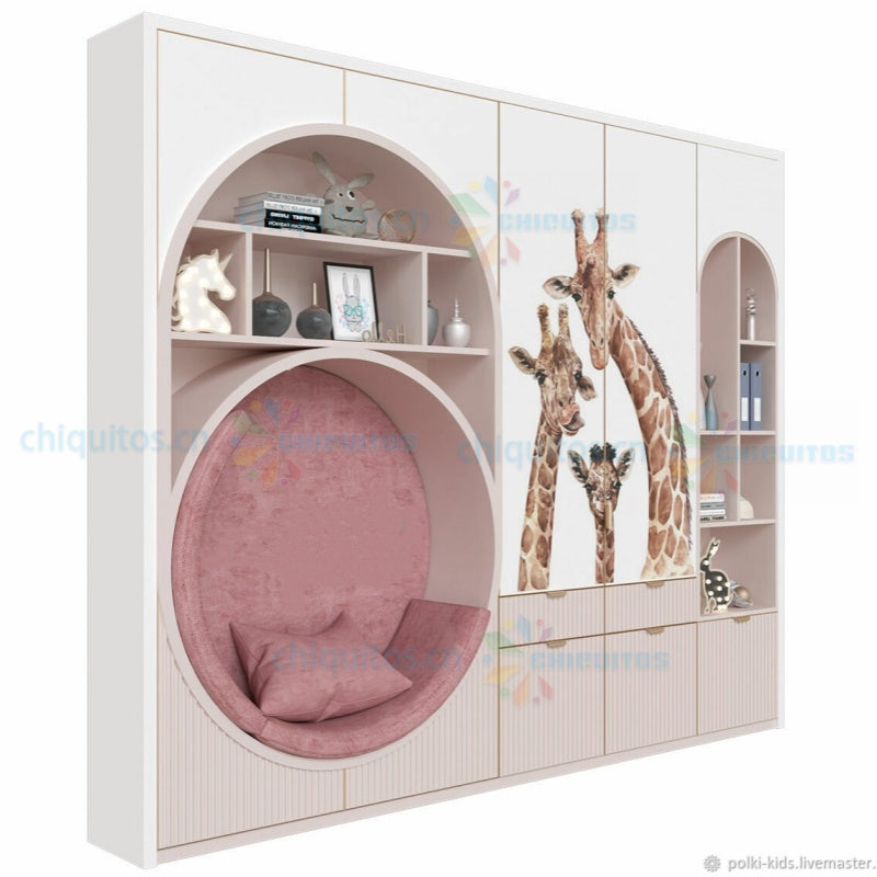 Chiquitos Modern Kids Bedroom Wall Storage Unit with Giraffe Print and Cozy Reading Nook