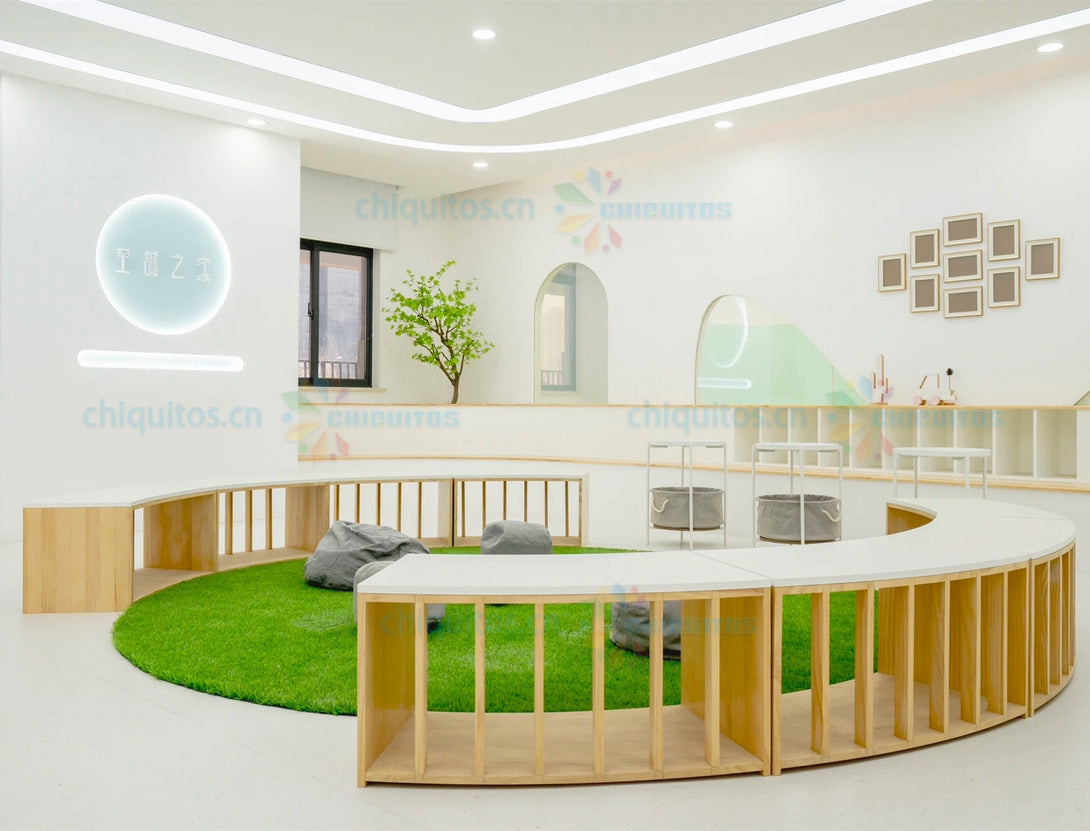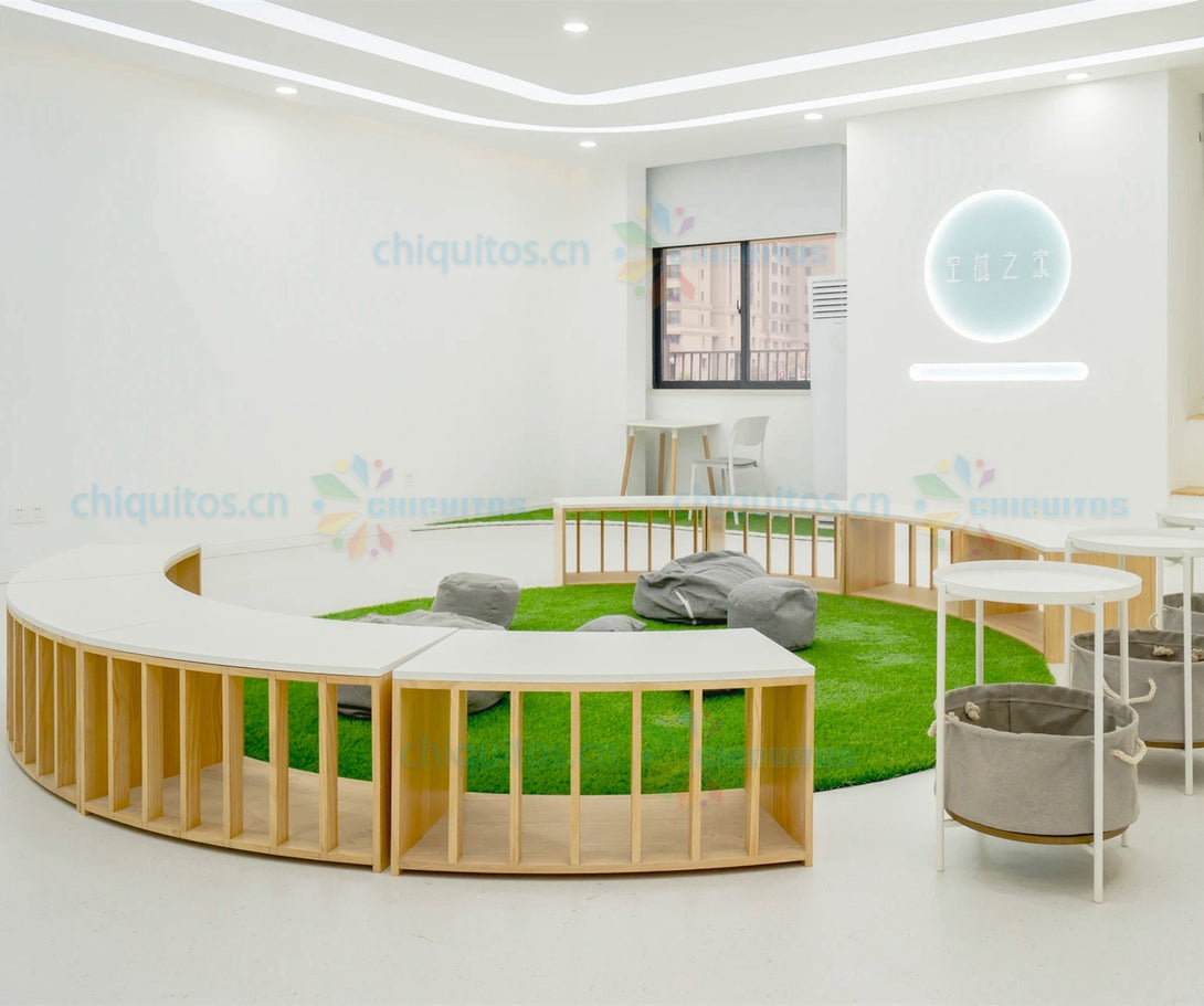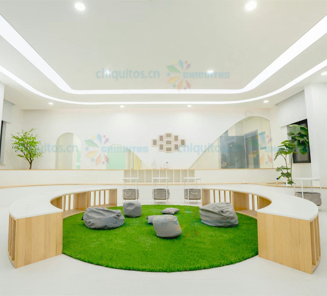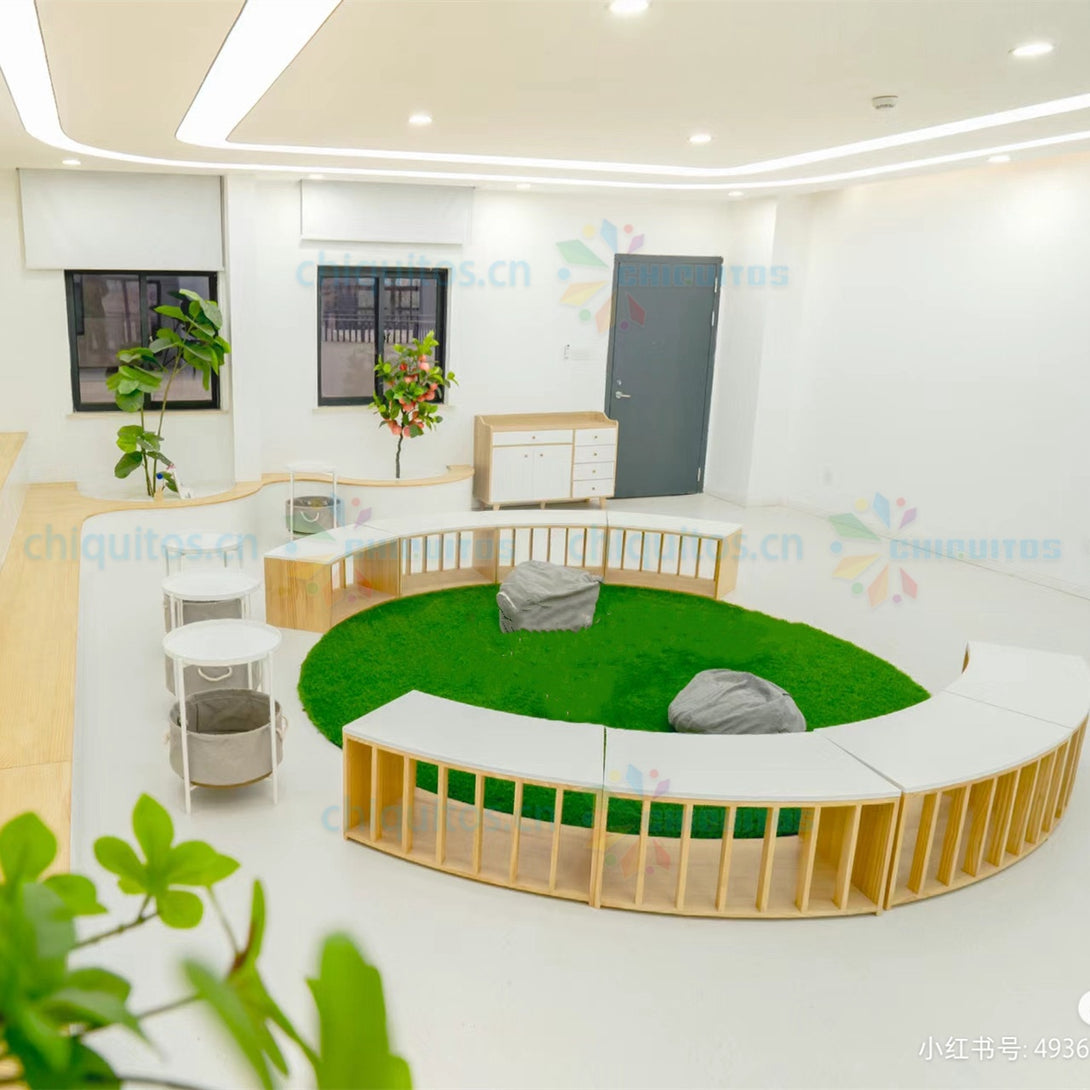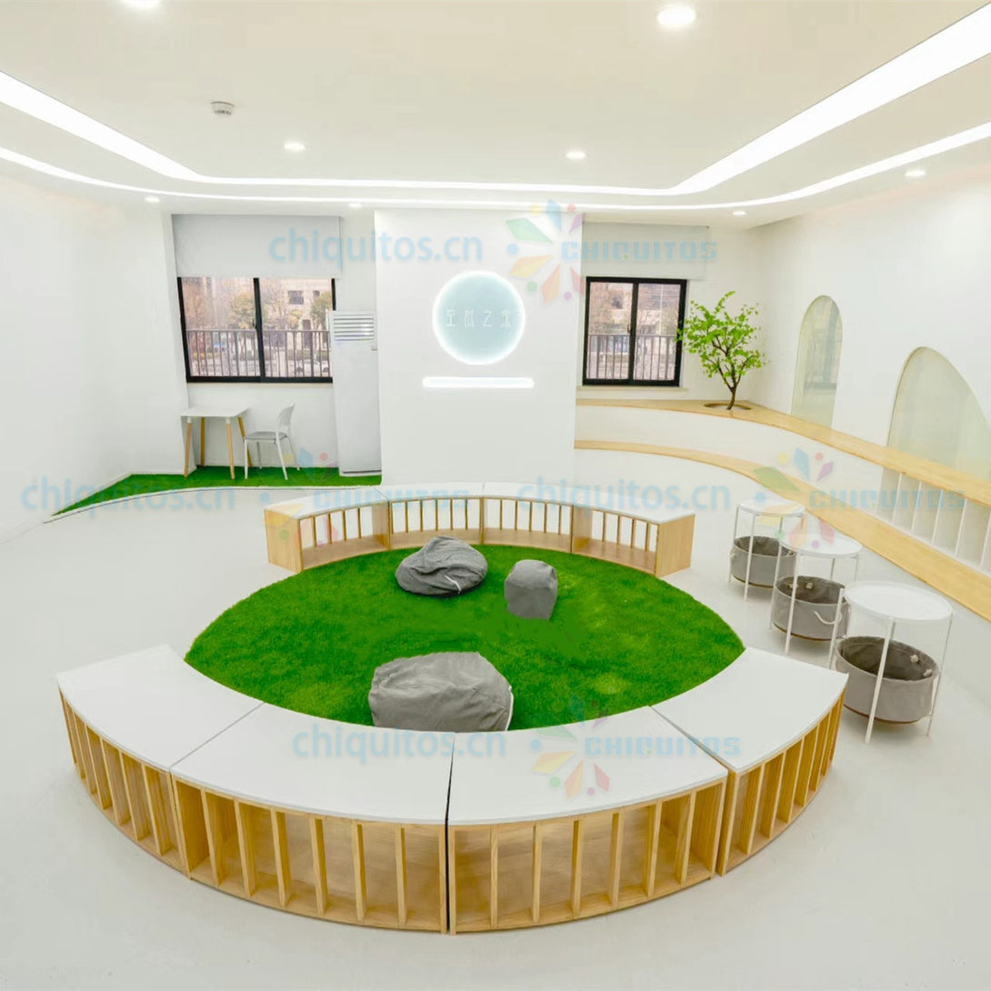 Chiquitos Modern Kids Playroom Furniture Wooden Activity Area with Grass Mat and Seating
