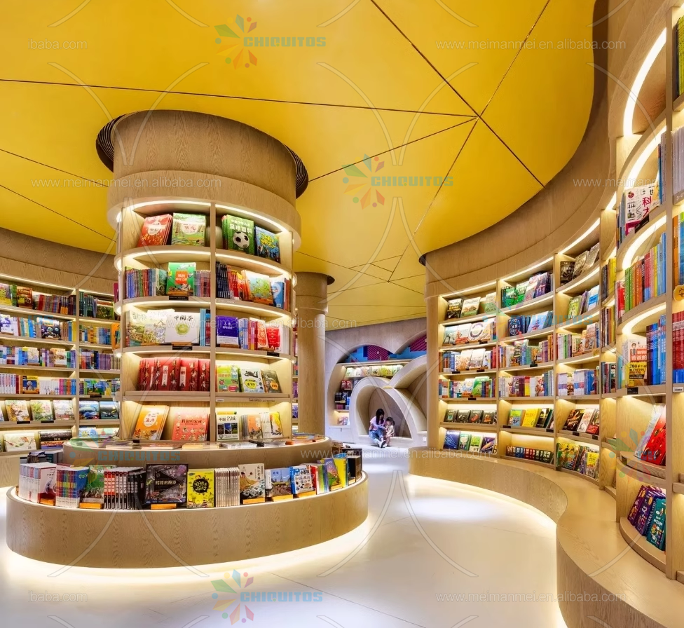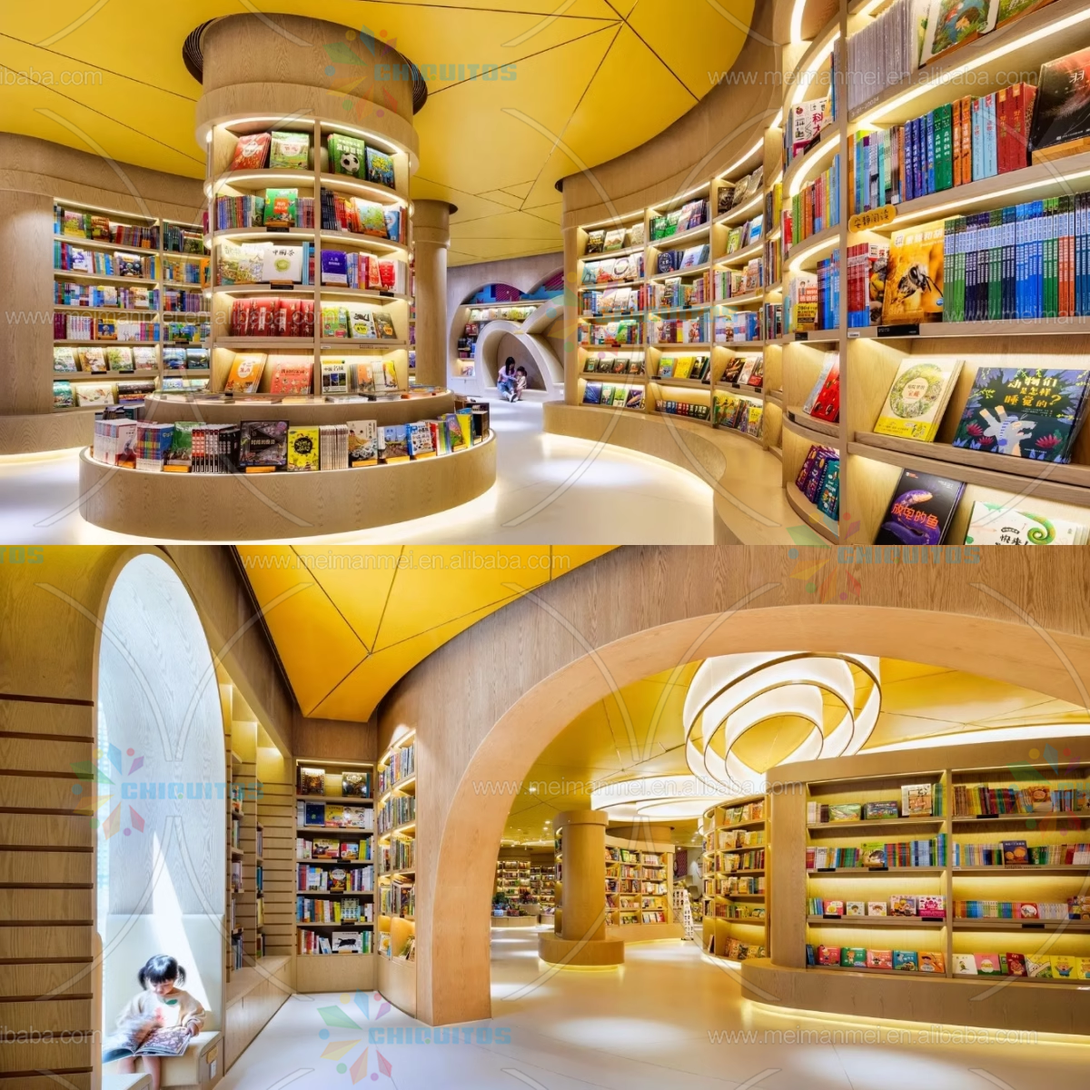 Chiquitos Modern Library Book Shelves Bookstore Furniture Bookcases Wood Bookshelf Library