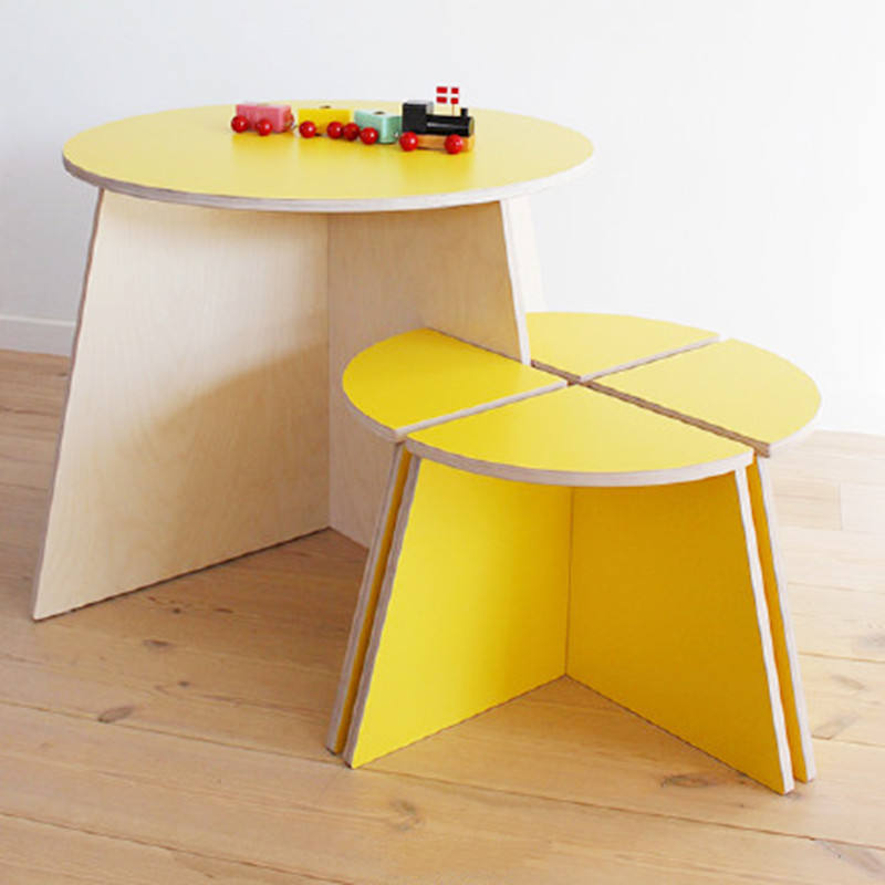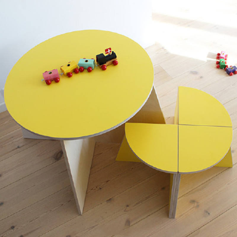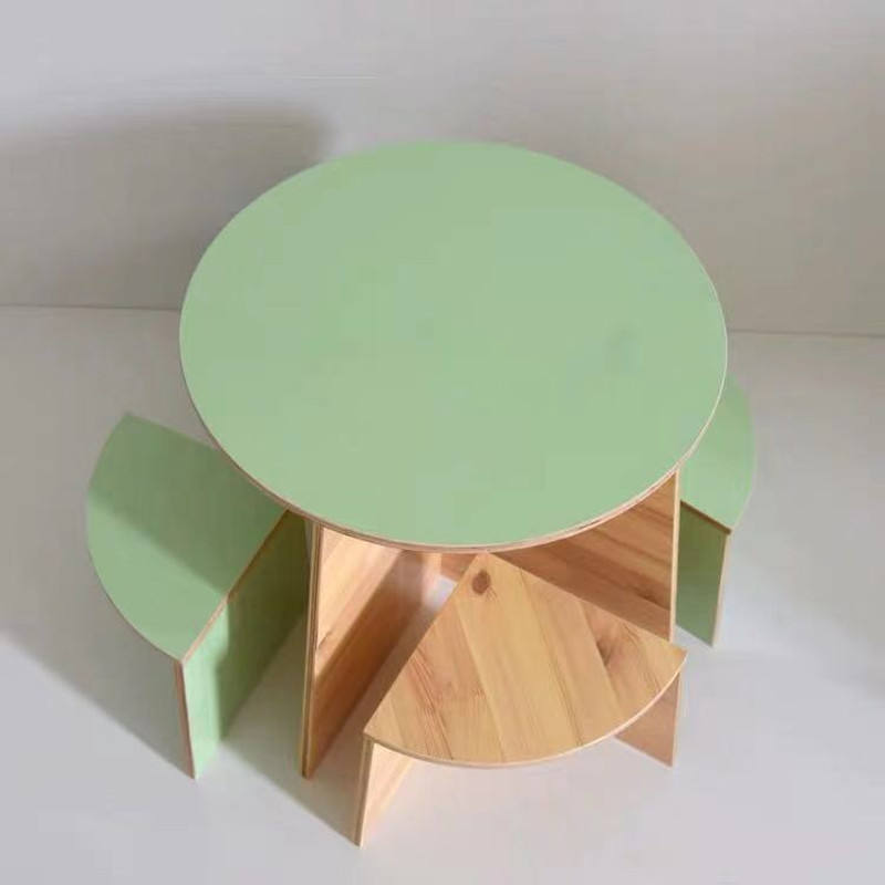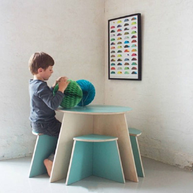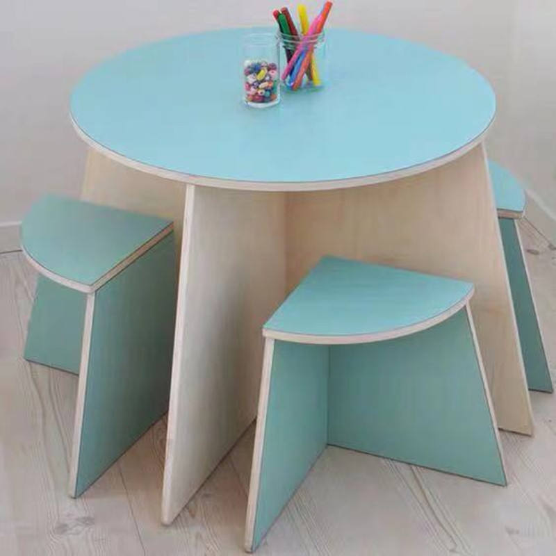 Chiquitos Modern Minimalist Furniture Space-Saving Nestable Round Table & Stool Set Triangle Base Design Chair Child's Playroom