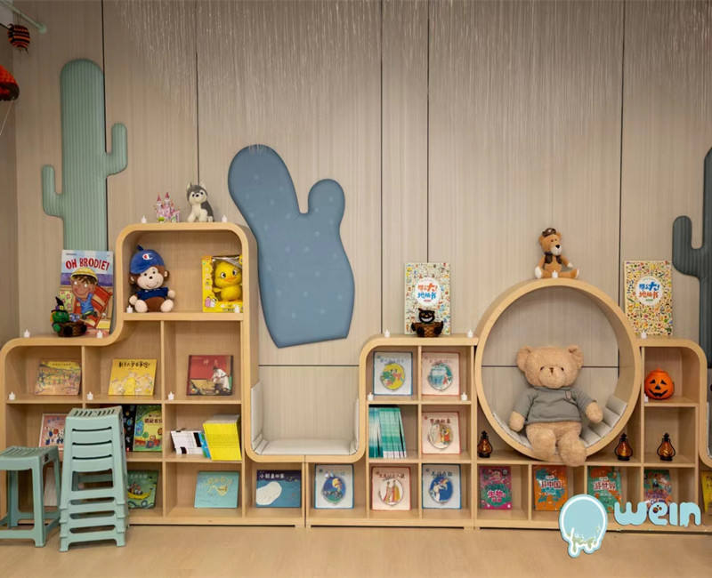 Chiquitos Modernistic Irregularity Wooden Bookshelf for children's facilities like kindergartens and living rooms.