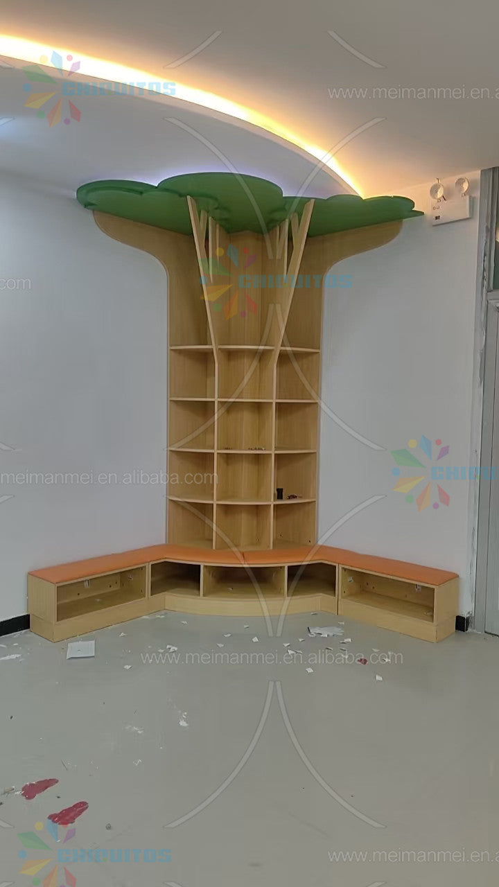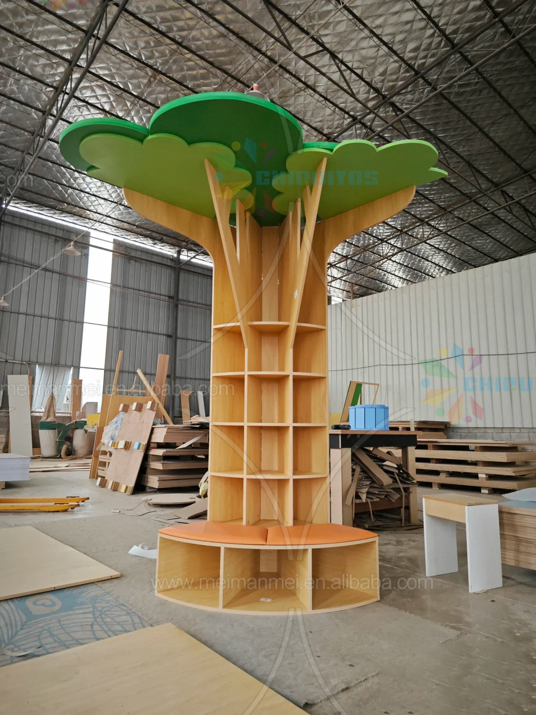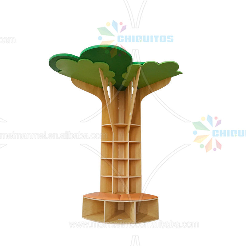 Chiquitos Montessori Kids Library Reading Tree Shaped Floor Bookshelf Daycare Corner Cabinet Wooden Preschool Toddler Book Nook