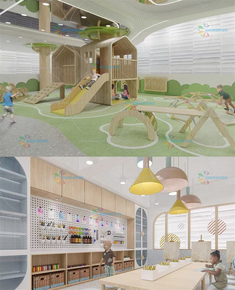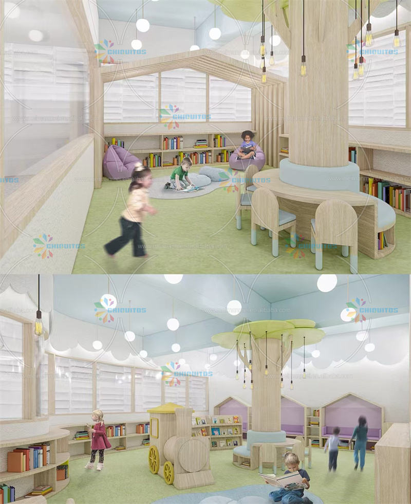 Chiquitos Montessori Kindergarten Children Furniture Nursery Day-Care Classroom decor house design reading corner book shelf