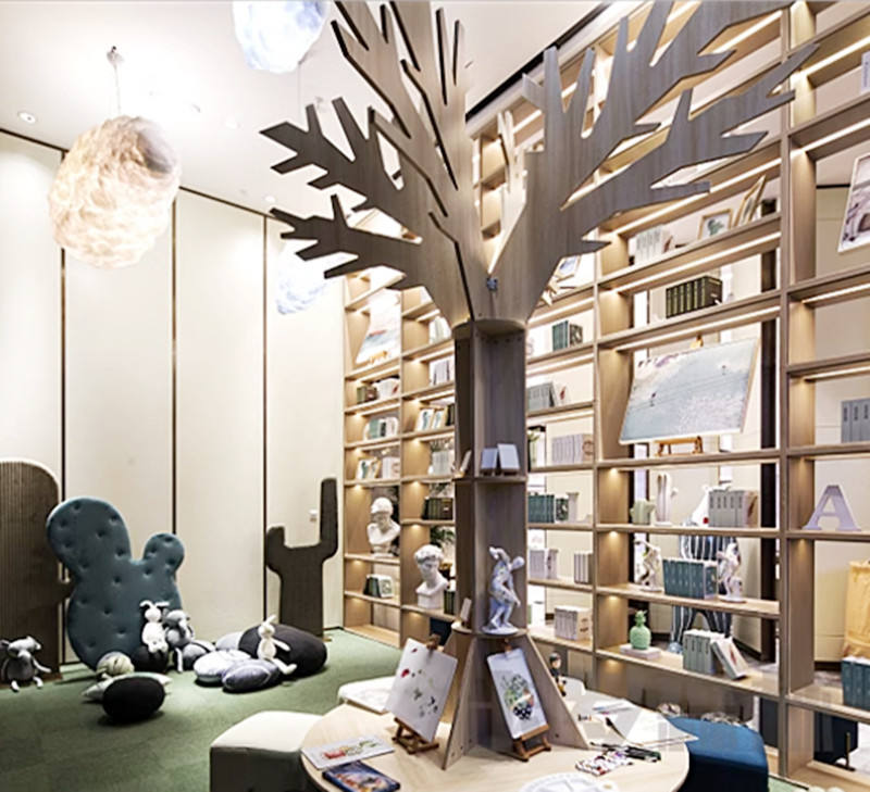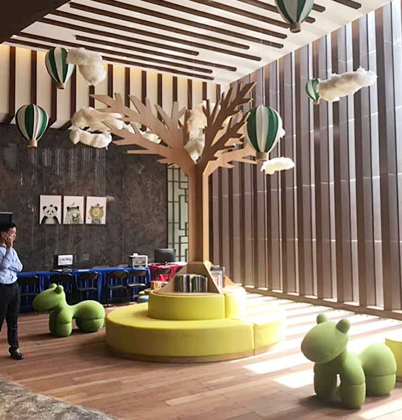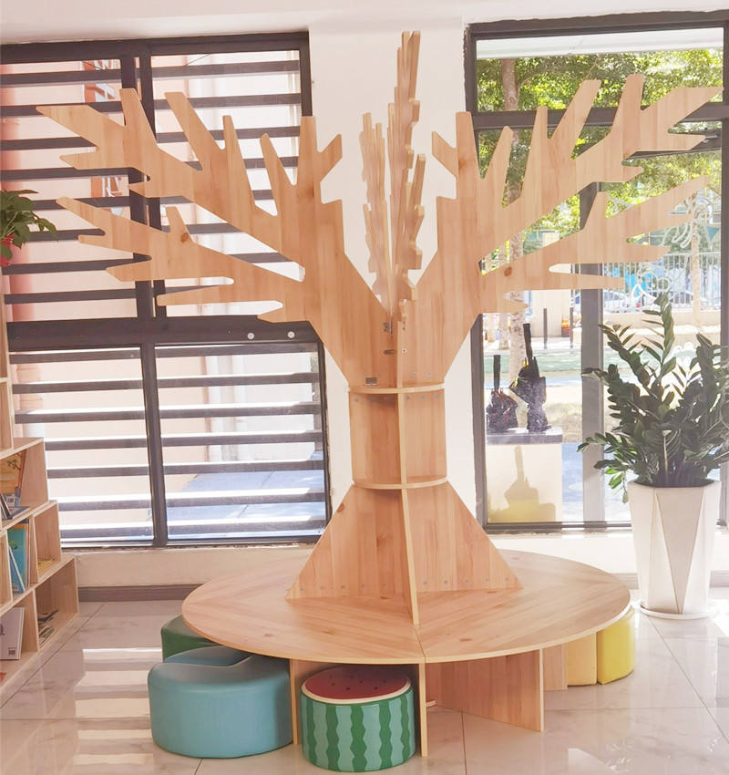 Chiquitos New big tree bookshelf early education training center hall painting area tree bench office rest area floor decoration