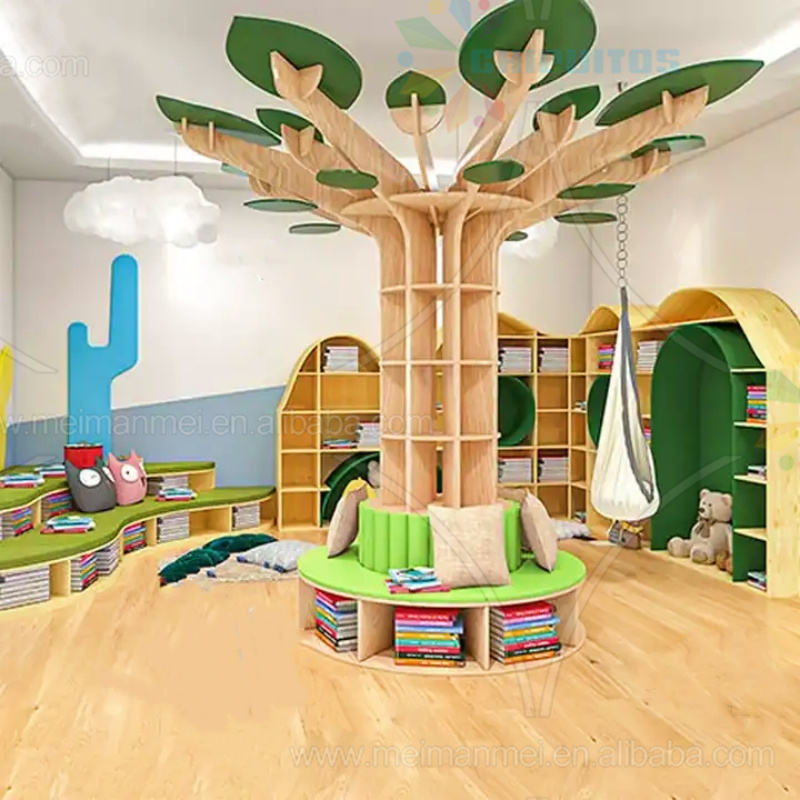 Chiquitos New style tree bookcase Australia Hot Sale Kids Library Furniture Wooden Reading Tree Shape Bookshelf kids library