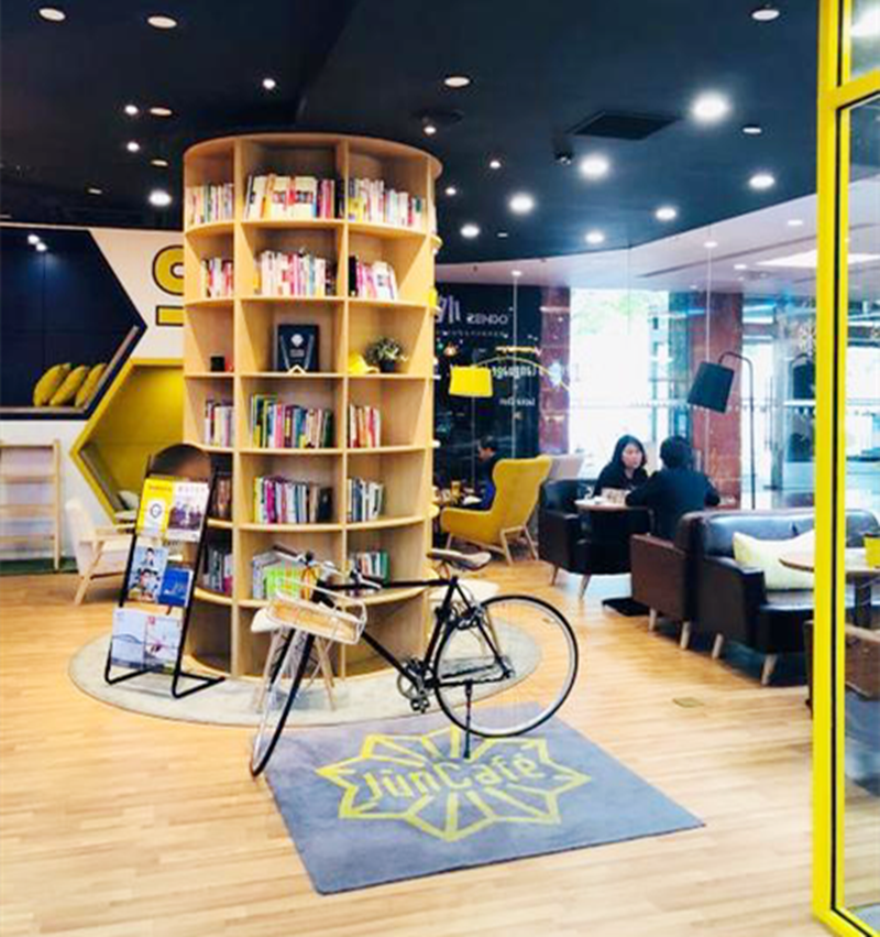 Chiquitos Primary school reading room book bar library floor multi-storey bookshelf male