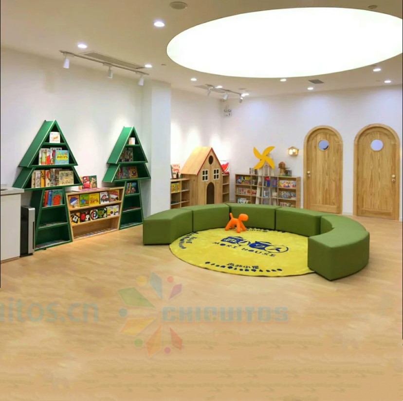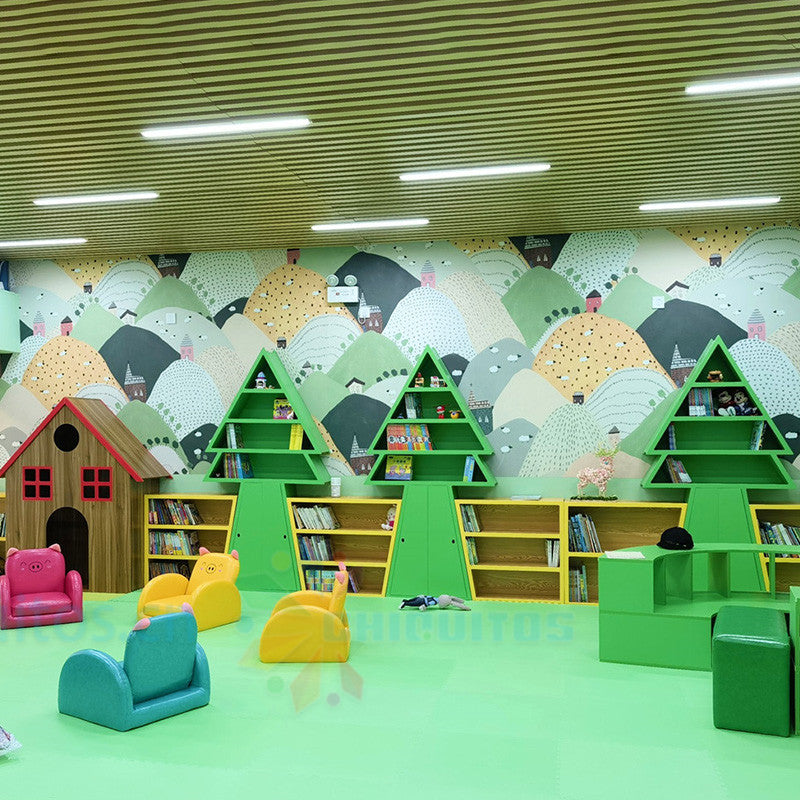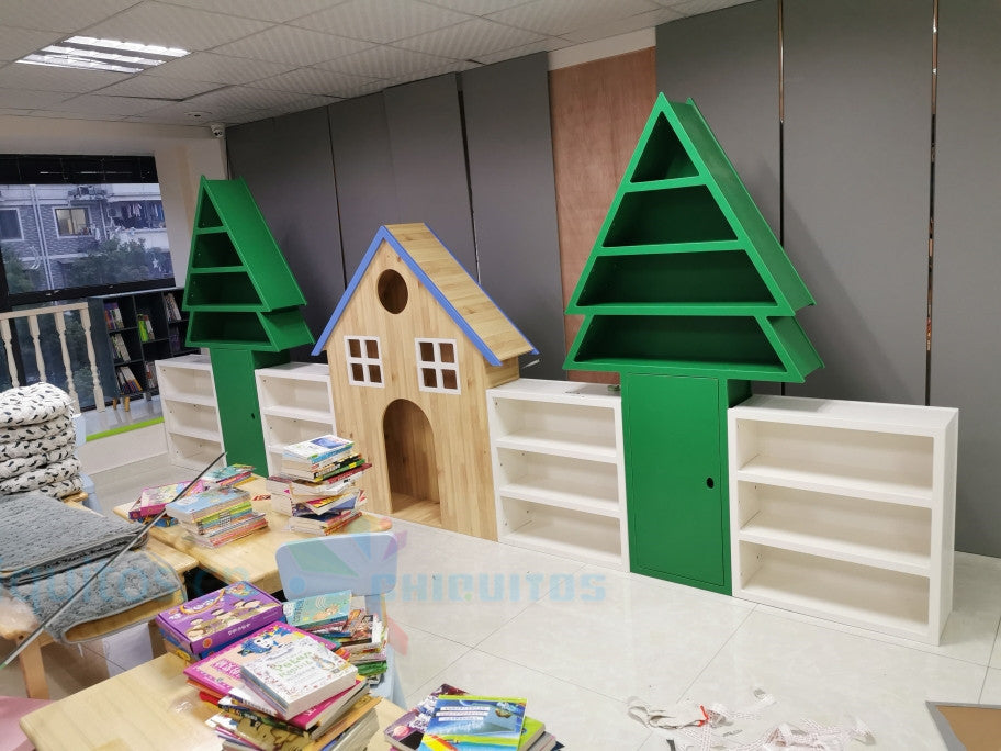 Chiquitos reading nook Wooden Christmas Tree Shaped Bookshelf Furniture sets for Daycare kindergarten Preschool Reading Center