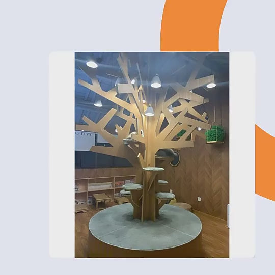 Chiquitos School library reading area log tree decoration bookshelf kindergarten picture book hall tree library decorate
