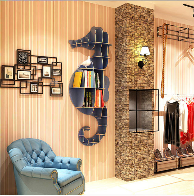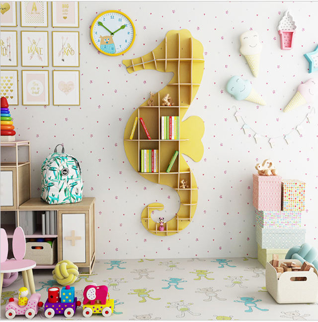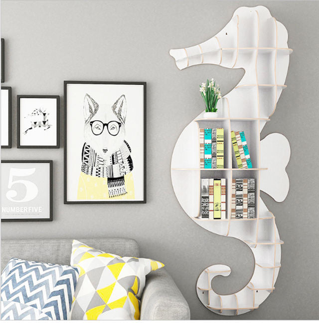 Chiquitos Small Nordic wall rack seahorse creative wall hanging bookshelf bedroom living room Haima-shaped bookcase